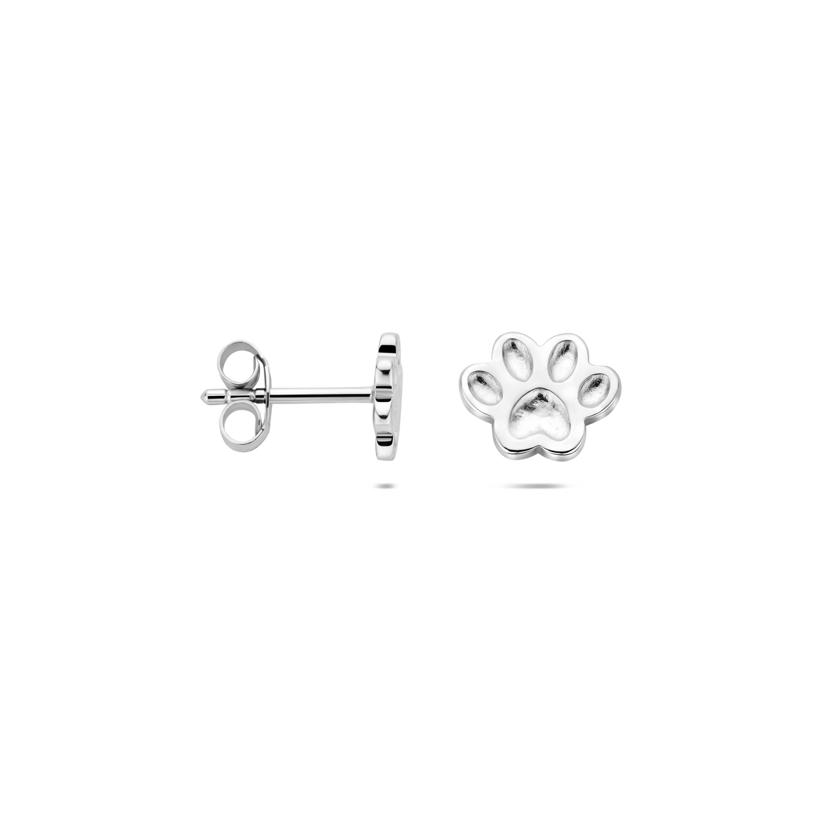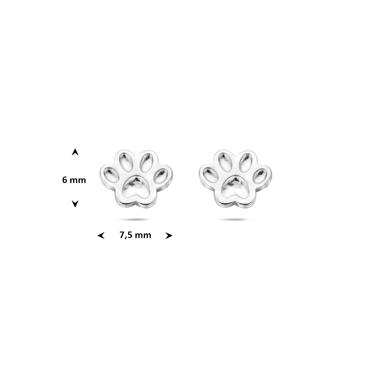 Gerhodineerd 925 zilveren oorknoppen in de vorm van een hondenpoot. De oorknoppen hebben een afmeting van 6×7.5mm.