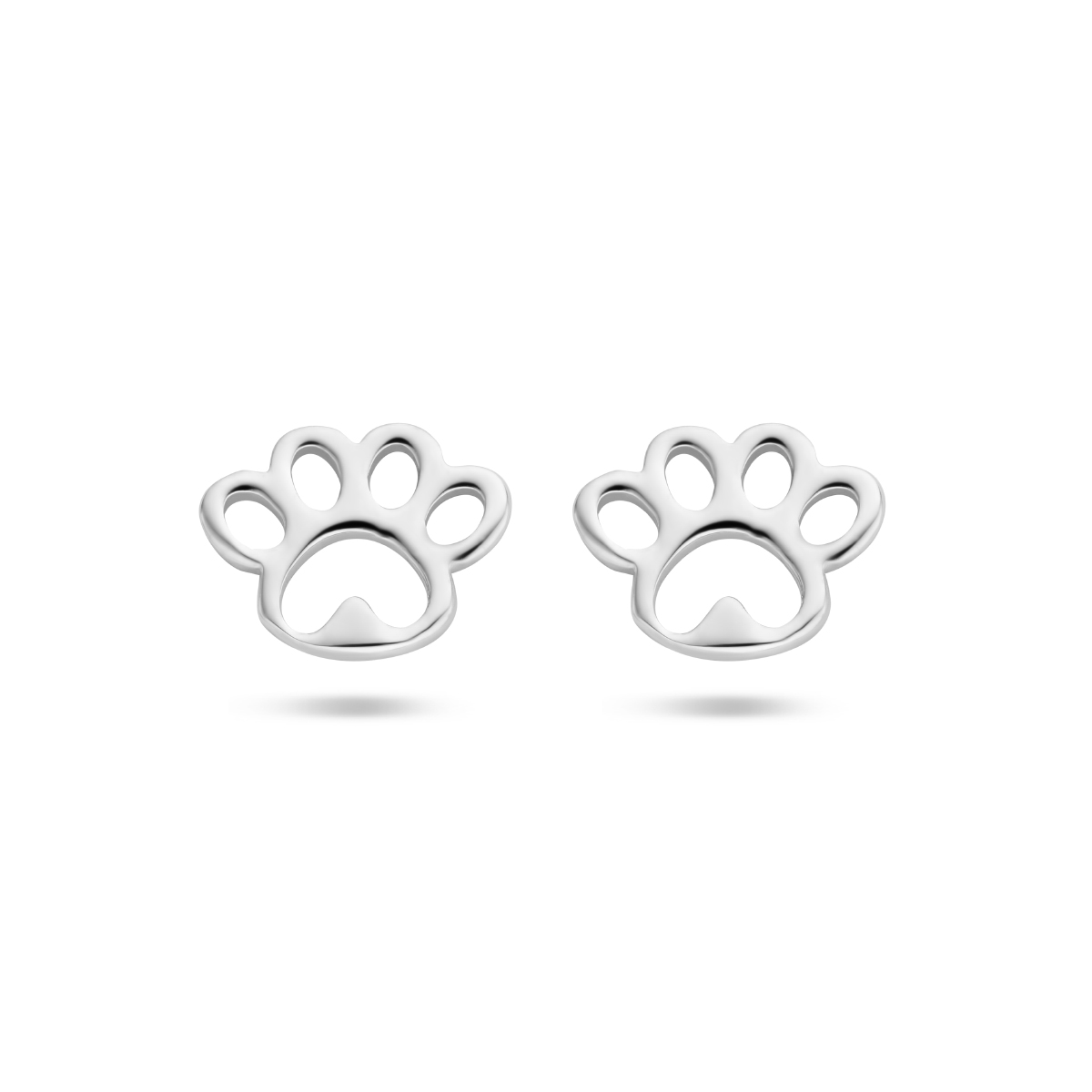 Gerhodineerd 925 zilveren oorknoppen in de vorm van een hondenpoot. De oorknoppen hebben een afmeting van 6.5x8mm.