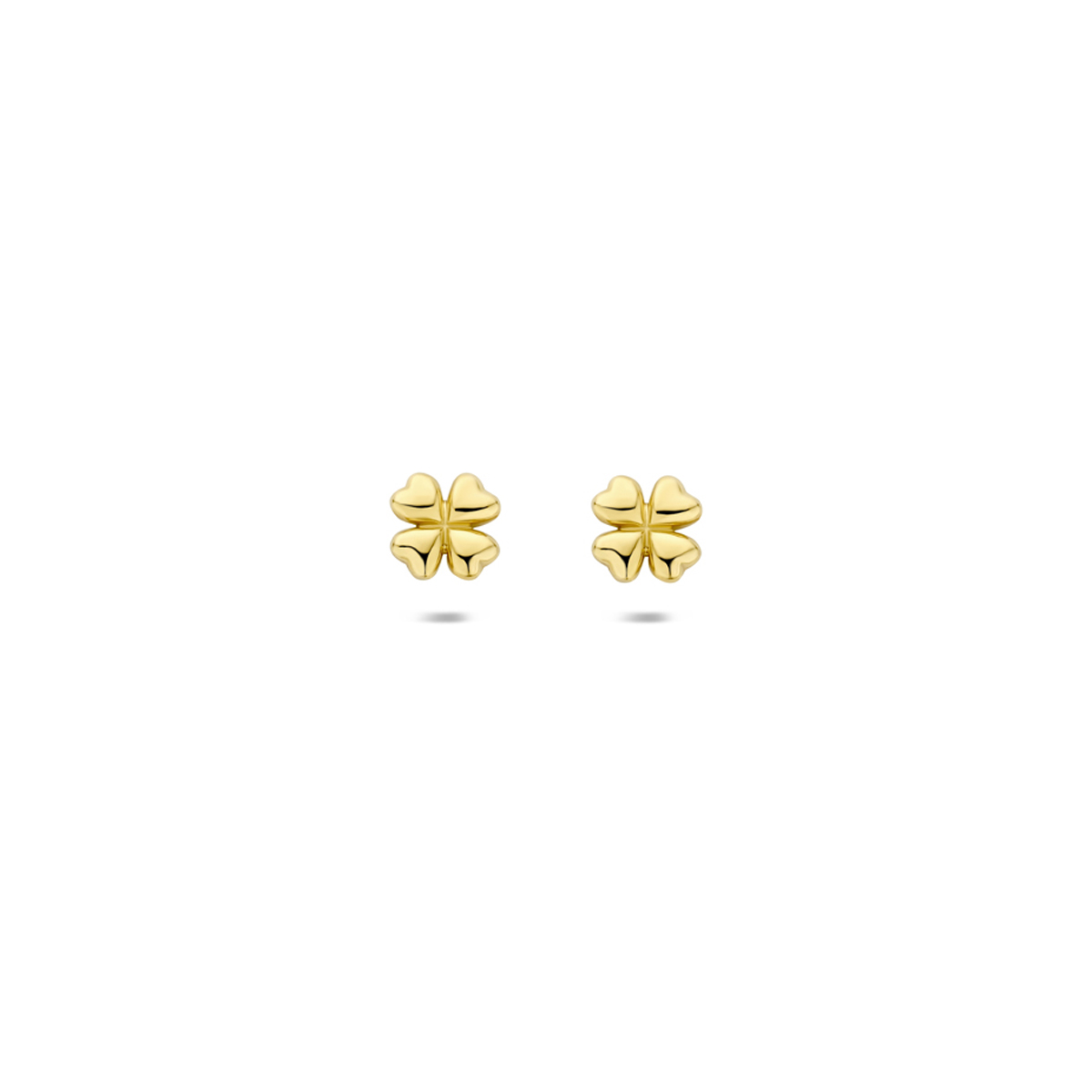 14k Geelgouden oorknoppen uitgevoerd met een klavertje opgebouwd uit 4 kleine hartjes. De oorknoppen hebben een afmeting van 3.5×3.5mm.
