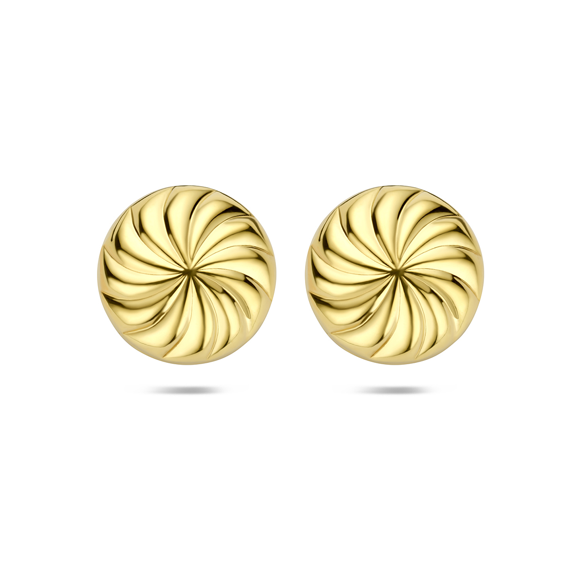 Verguld geel op 925 zilveren oorknoppen in de vorm van een knoop. De oorknoppen hebben een diameter van 18mm. Geen garantie op plating.