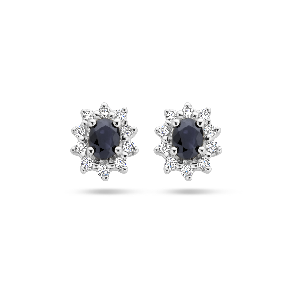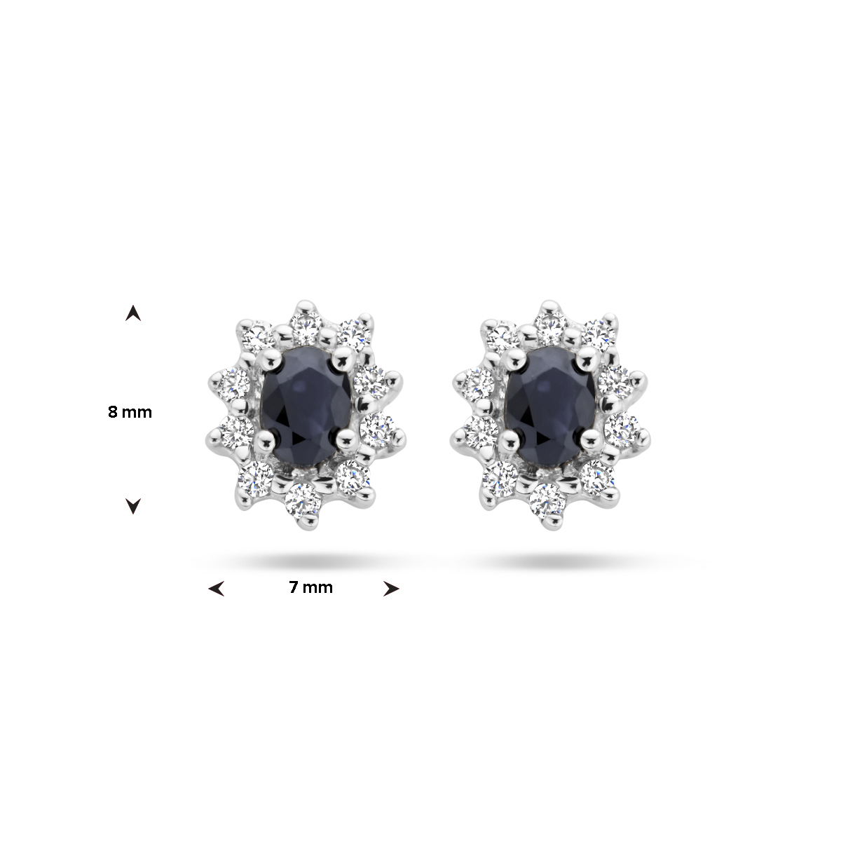 Witgouden oorknoppen met saffier en zirkonia.