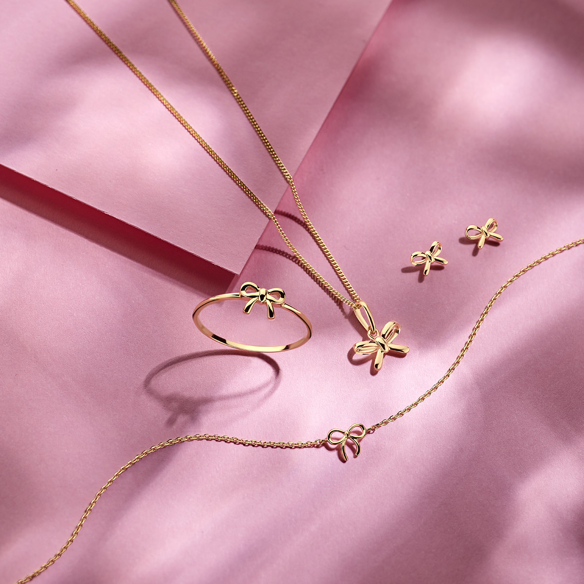 14k geelgouden oorknoppen uitgevoerd in de vorm van een strik met de afmeting van 4.5×6.5mm.