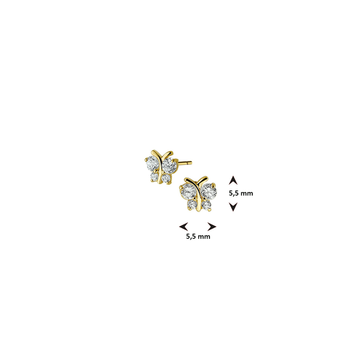 Geelgouden oorknoppen met een vlinder en zirkonia.
