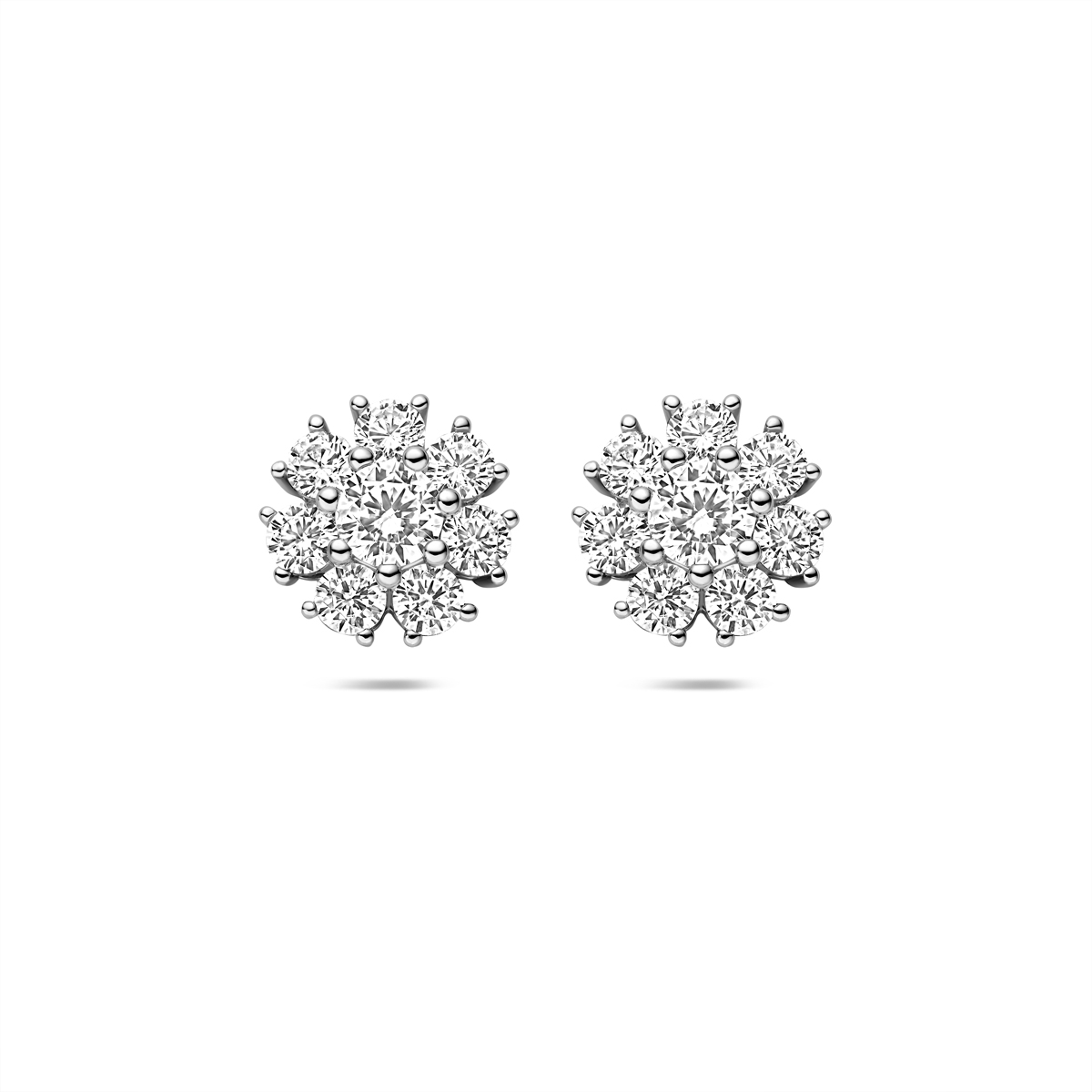 Gerhodineerd 925 zilveren oorknoppen uitgevoerd met zirkonia. De oorknoppen hebben een diameter van 10,5 mm.
