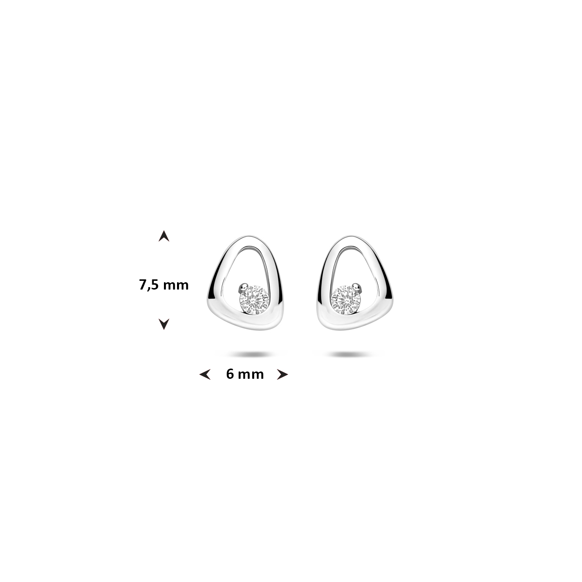 oorknoppen zirkonia 7,5 mm zilver gerhodineerd