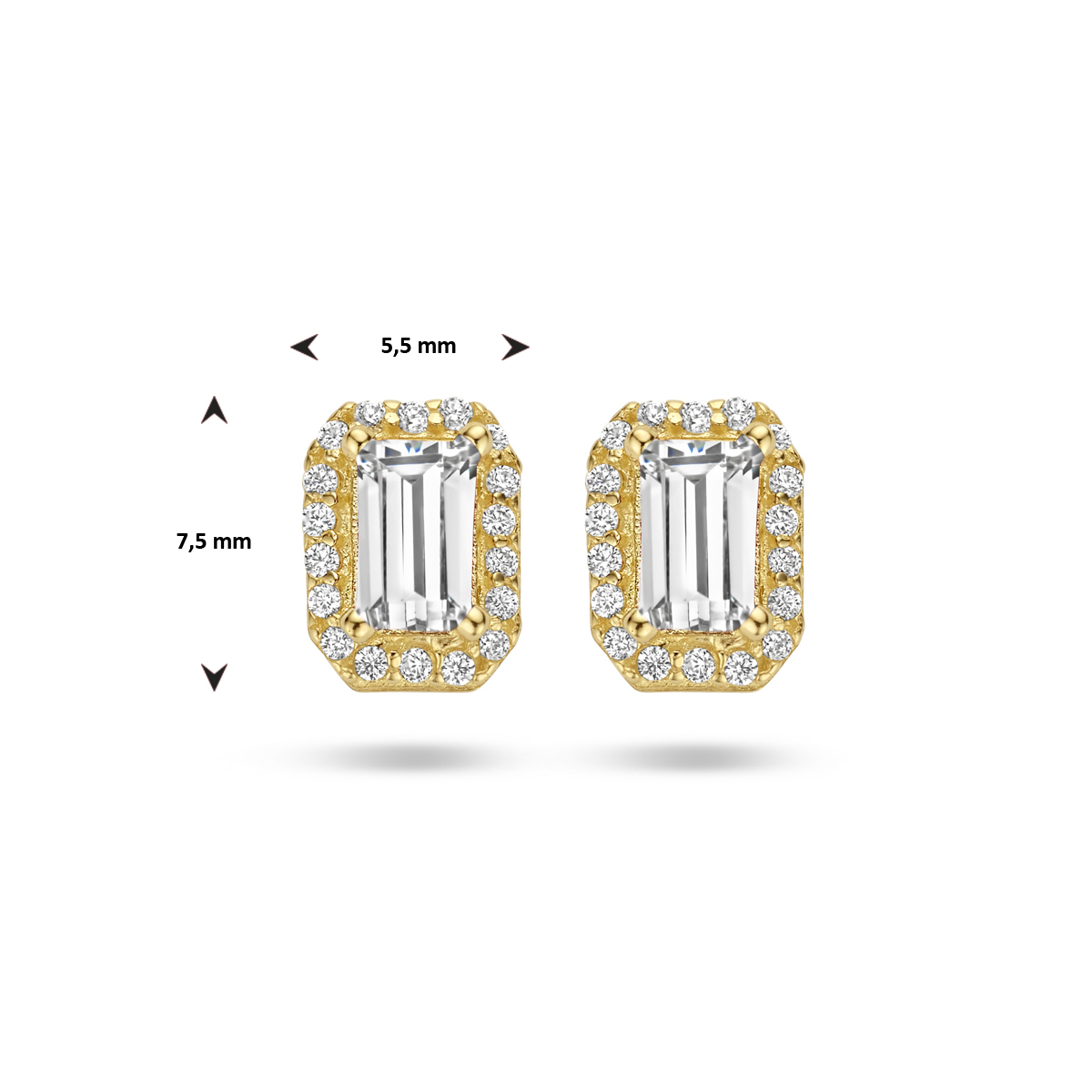 14k Geelgouden oorknoppen uitgevoerd met schitterende zirkonia. De oorknoppen hebben een afmeting van 7.5×5.5mm.