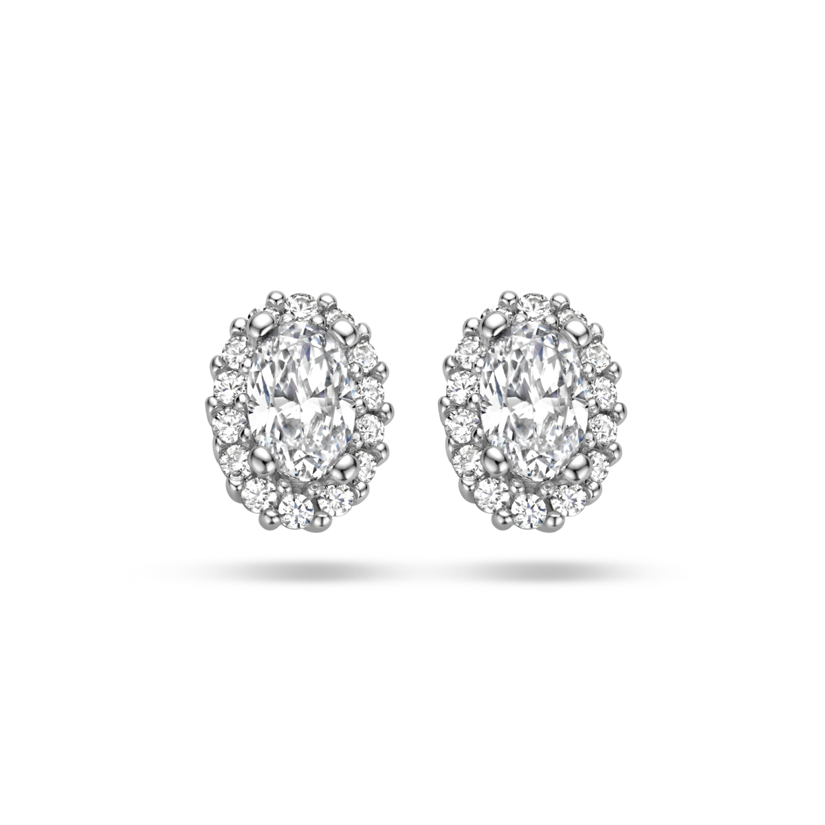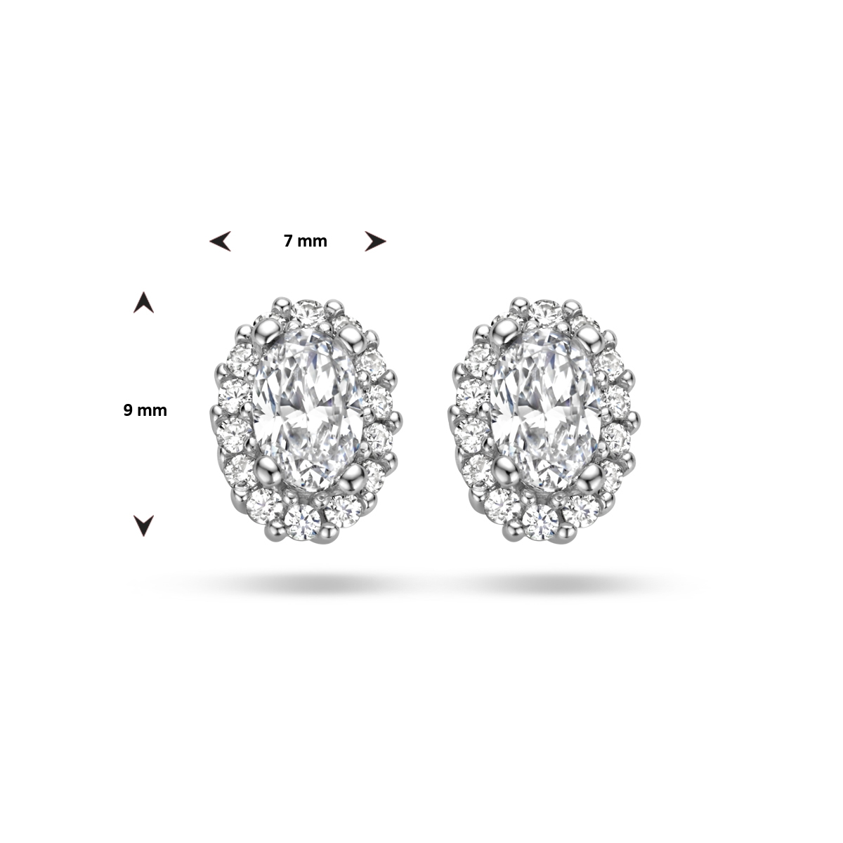 Gerhodineerd 925 zilveren oorknoppen uitgevoerd met zirkonia. De oorknoppen hebben een afmeting van 9x7mm.
