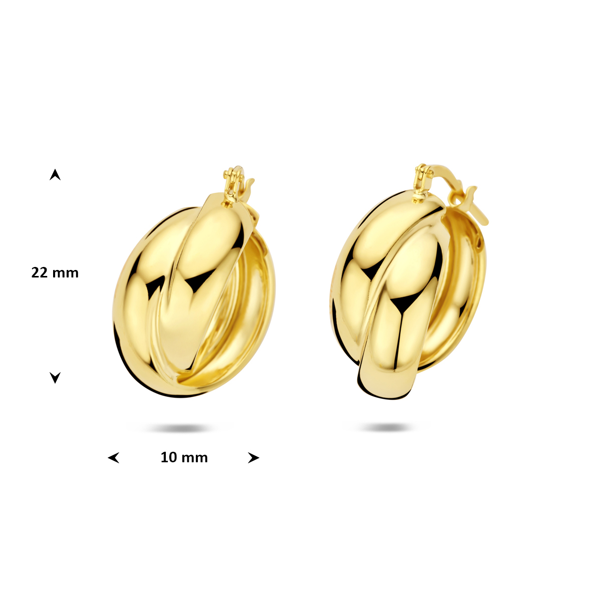 Verguld geel 925 zilveren oorringen met een afmeting van 22x10mm. Geen garantie op plating.