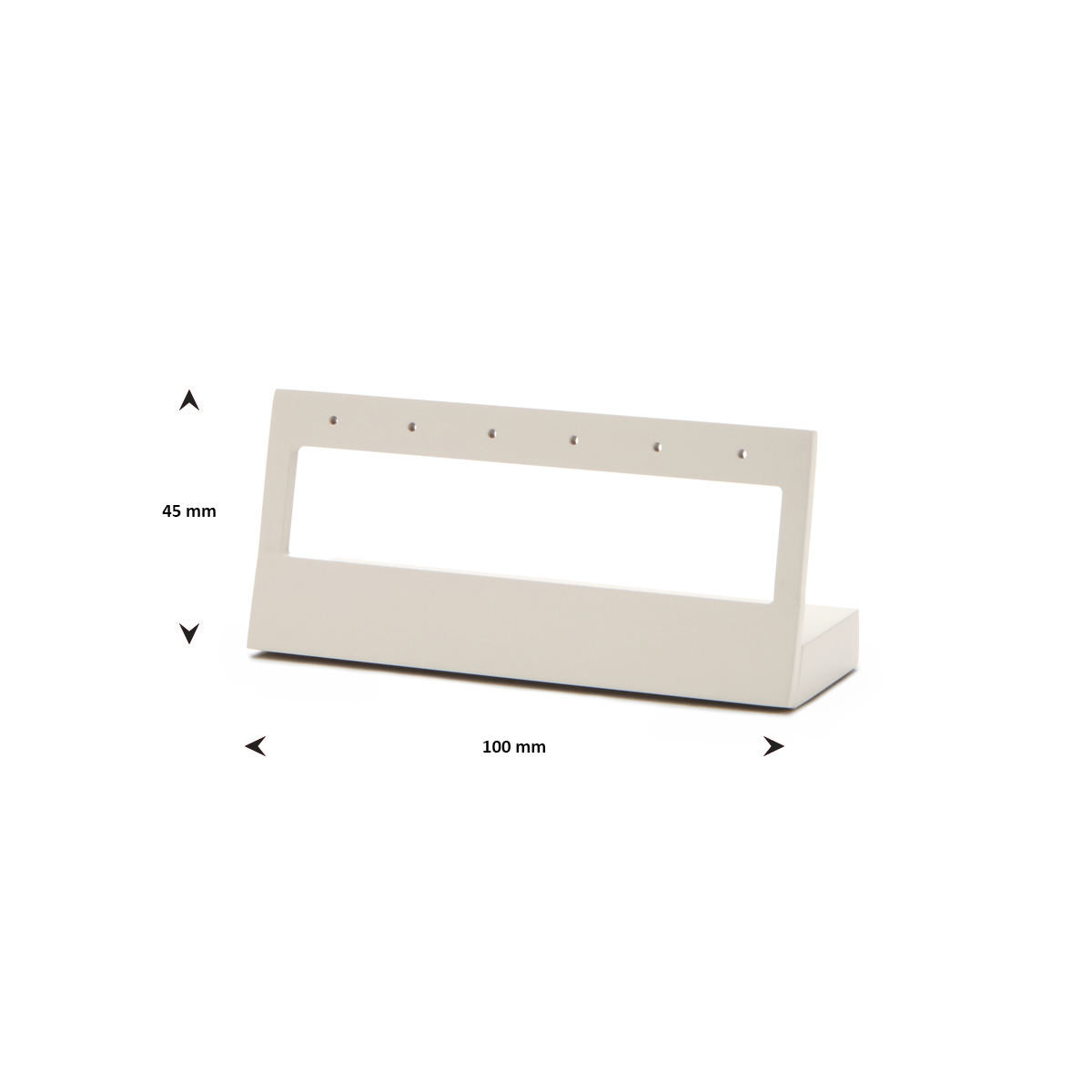 Kunststof oorringen display waar 3 paar oorringen op gepresenteerd kunnen worden. Het display is voorzien van beige gespoten lak met een matte afwerking en wordt geleverd excl. oorringen. Wegens hoge bezorgkosten wordt dit artikel alleen verstuurd bij een ordergrootte vanaf €50,-.