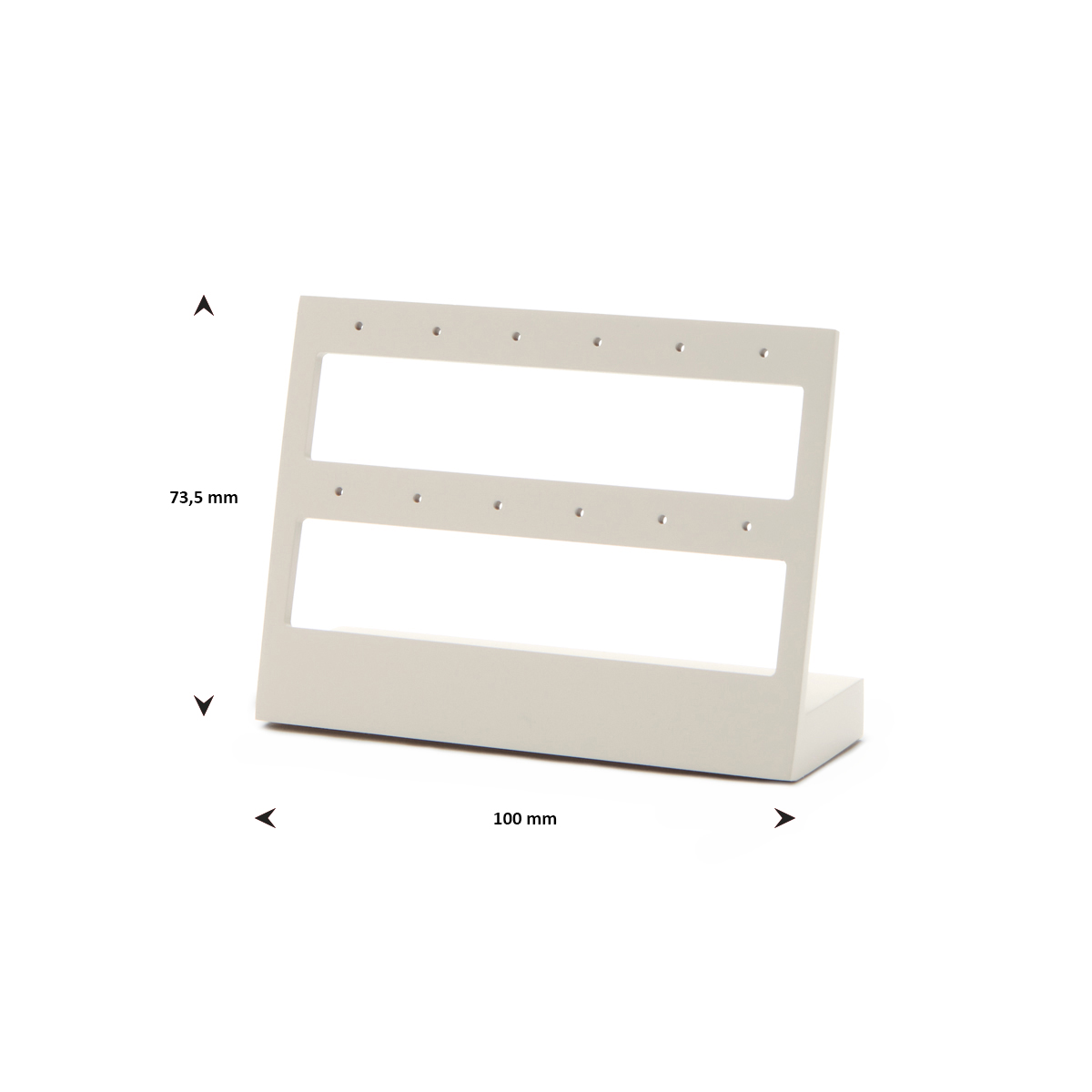 Kunststof oorringen display waar 6 paar oorringen op gepresenteerd kunnen worden. Het display is voorzien van beige gespoten lak met een matte afwerking en wordt geleverd excl. oorringen. Wegens hoge bezorgkosten wordt dit artikel alleen verstuurd bij een ordergrootte vanaf €50,-.