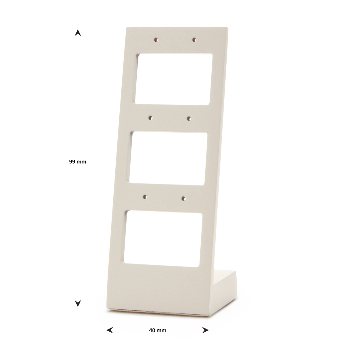 Kunststof oorringen display waar 3 paar oorringen op gepresenteerd kunnen worden. Het display is voorzien van beige gespoten lak met een matte afwerking en wordt geleverd excl. oorringen. Wegens hoge bezorgkosten wordt dit artikel alleen verstuurd bij een ordergrootte vanaf €50,-.
