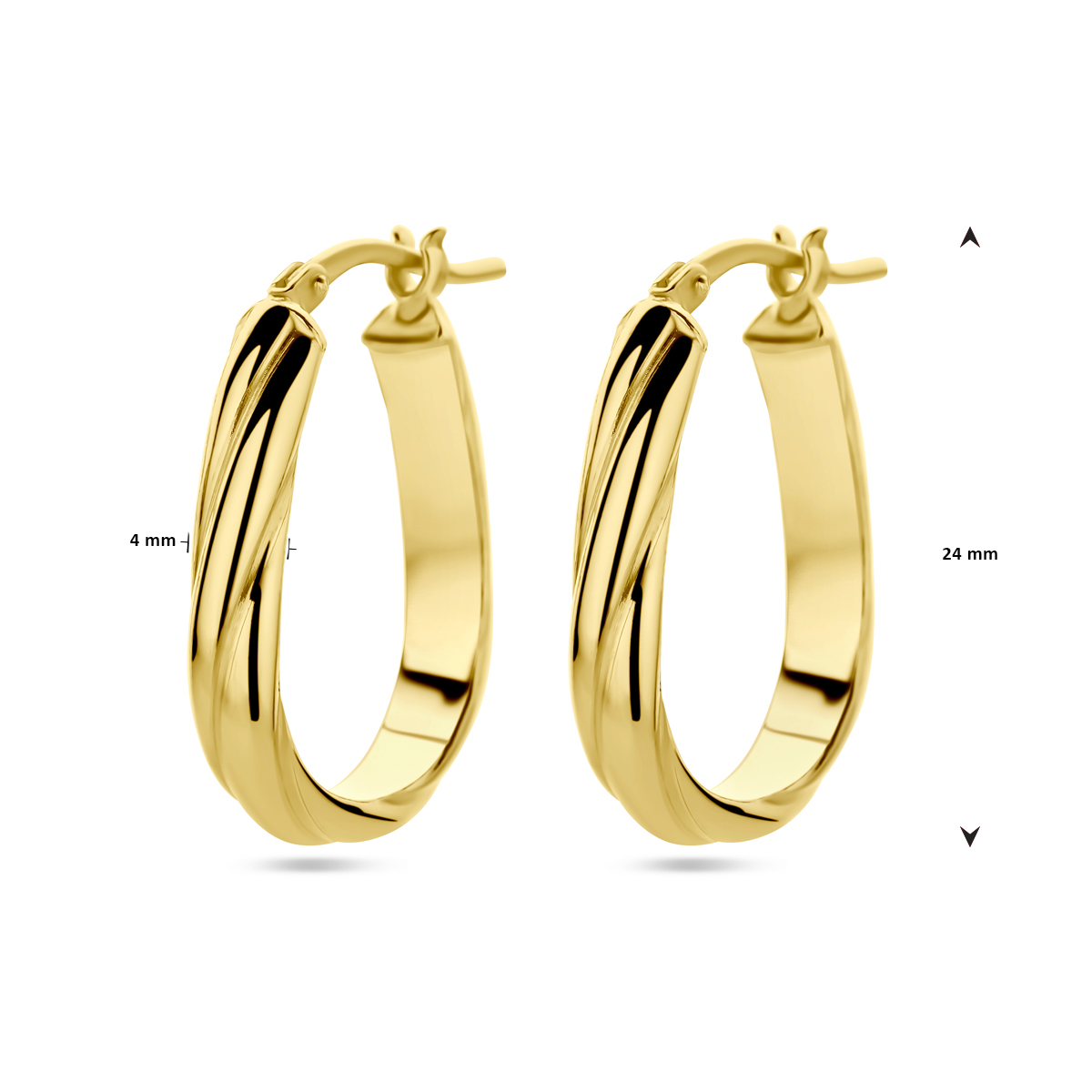 Verguld op 925 zilveren oorringen met een afmeting van 24x4mm. Geen garantie op de plating.