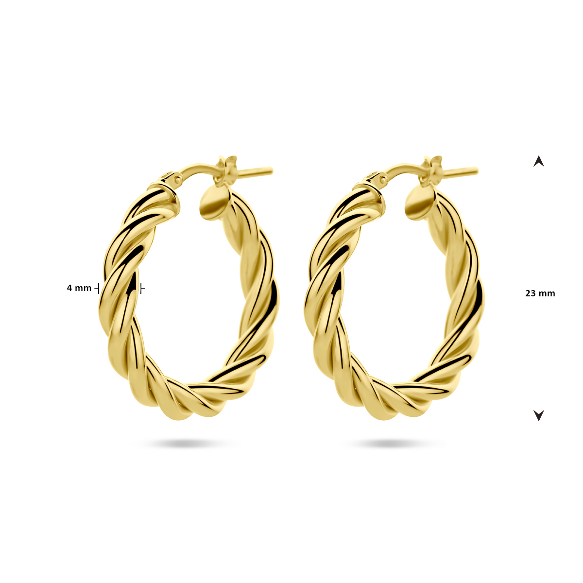 Verguld op 925 zilveren oorringen met een afmeting van 23x4mm. Geen garantie op de plating.