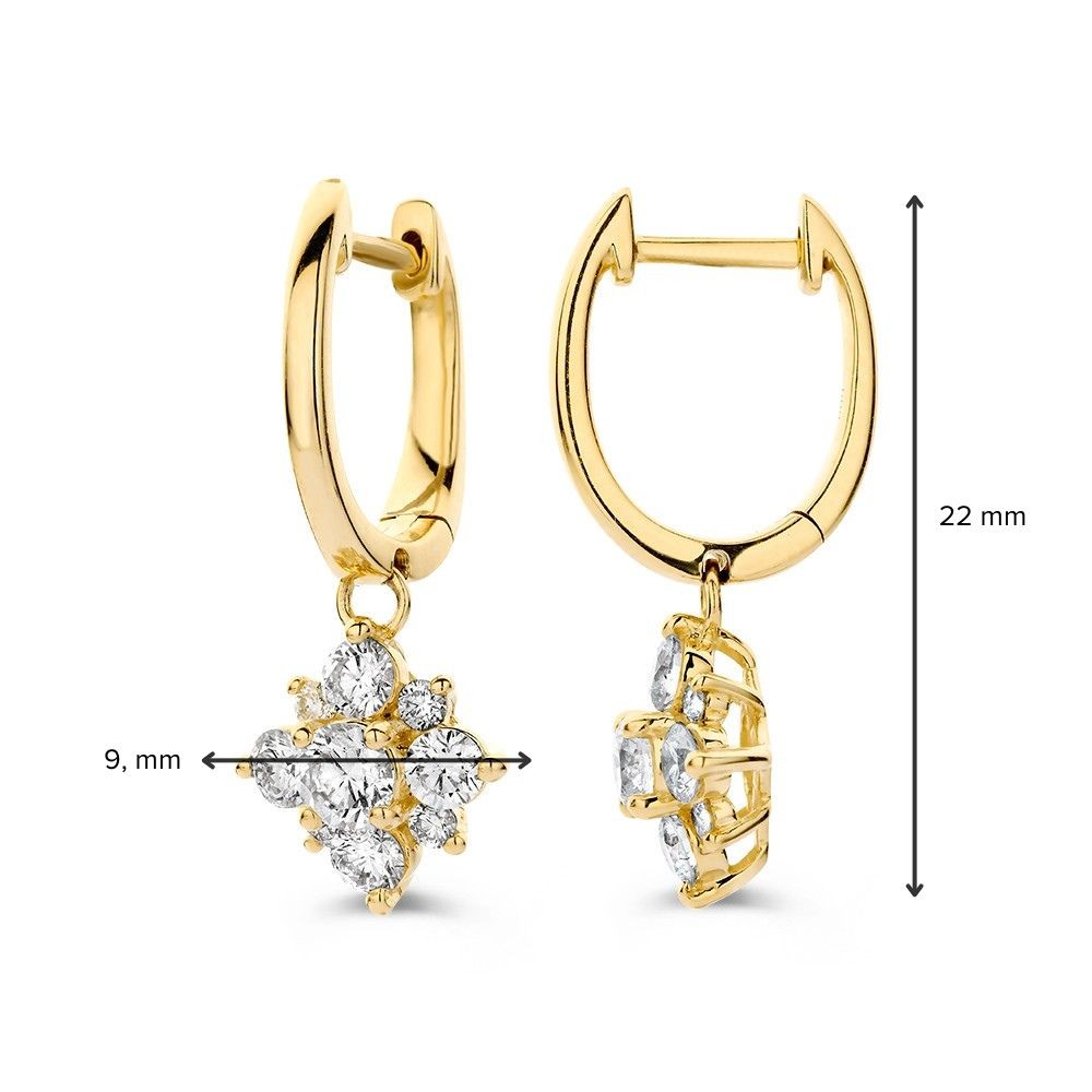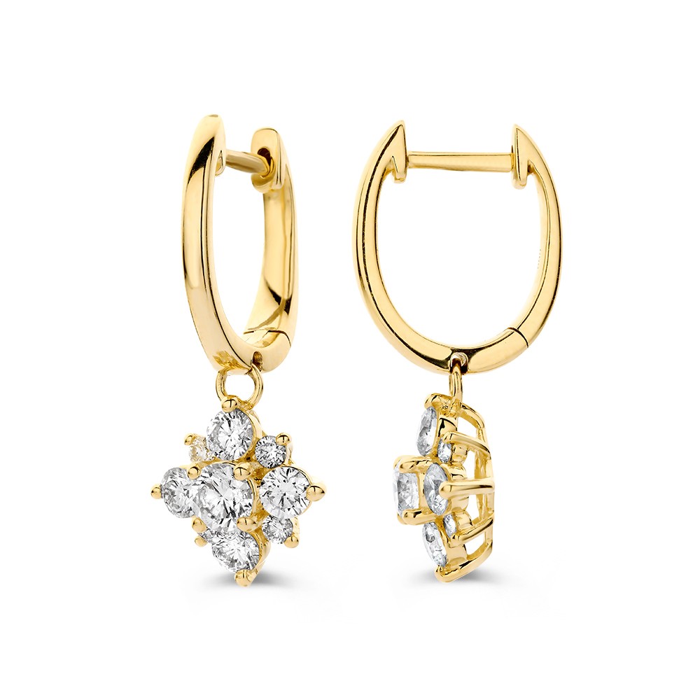 Geelgouden oorringen met prachtige entourage hangers van diamant.