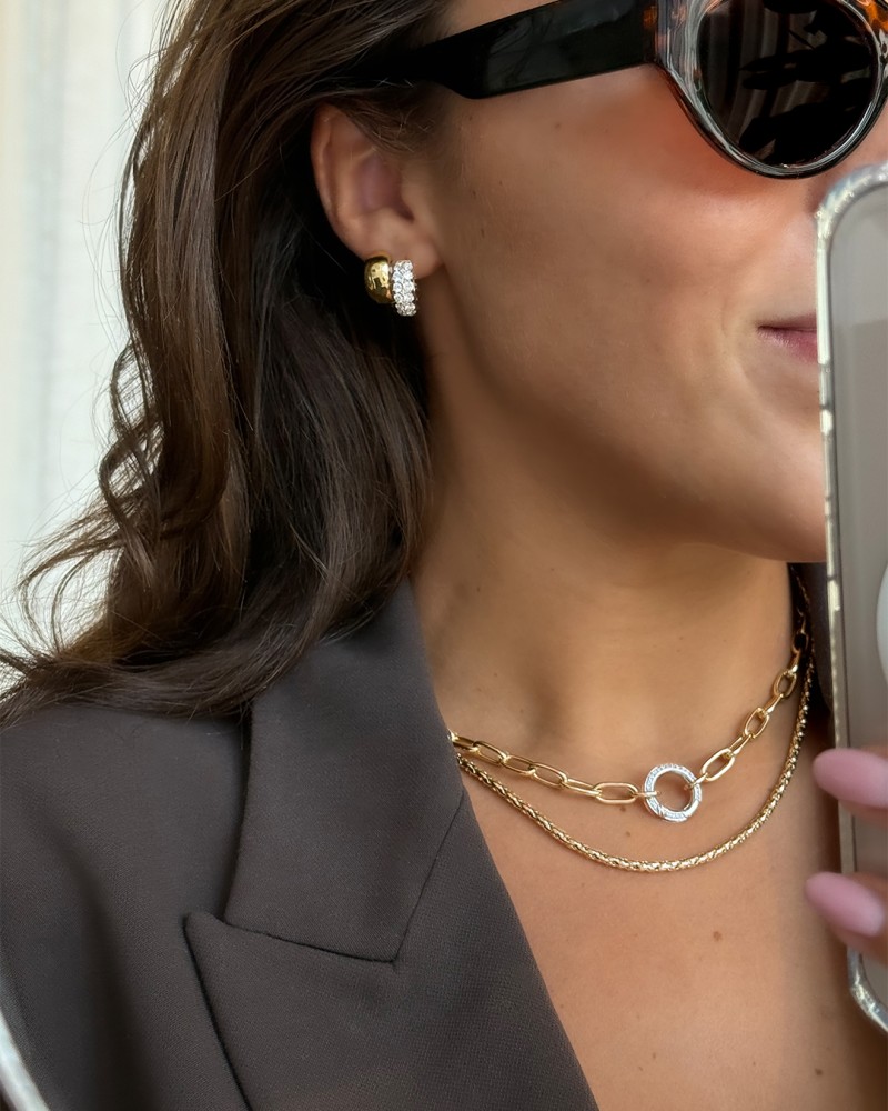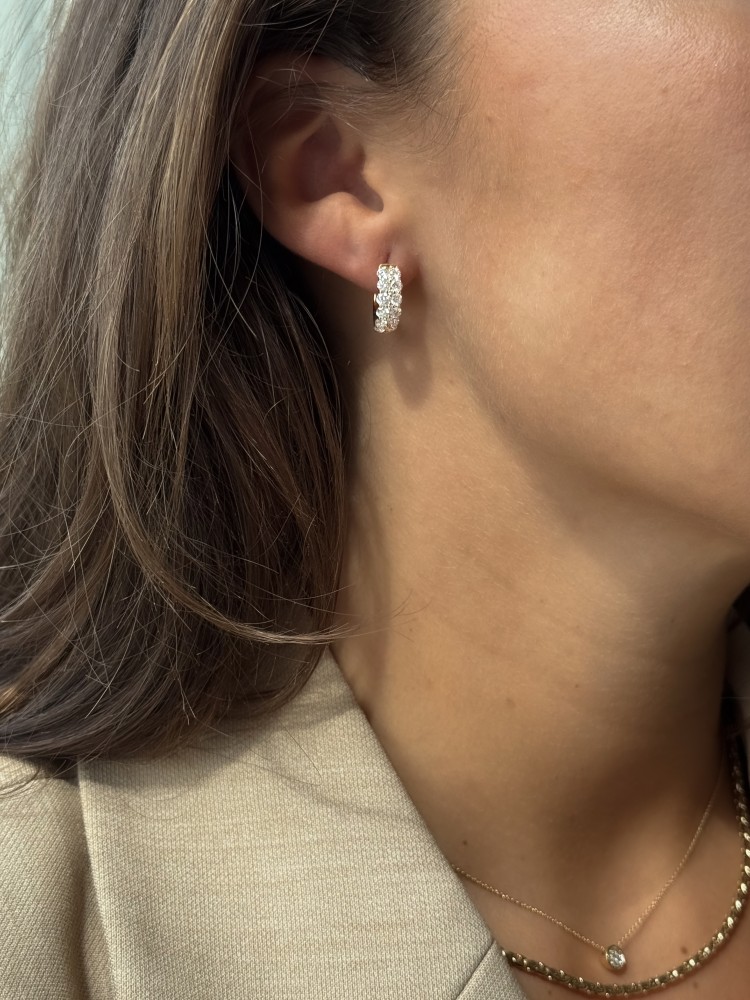 Luxe, gouden oorringen met fonkelende diamanten in een opvallende pavézetting.