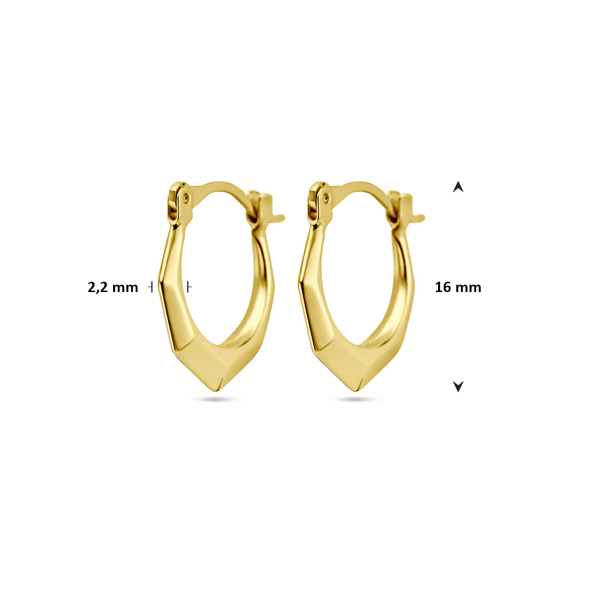 14k Geelgouden lapide oorringen met een diameter van 16mm.