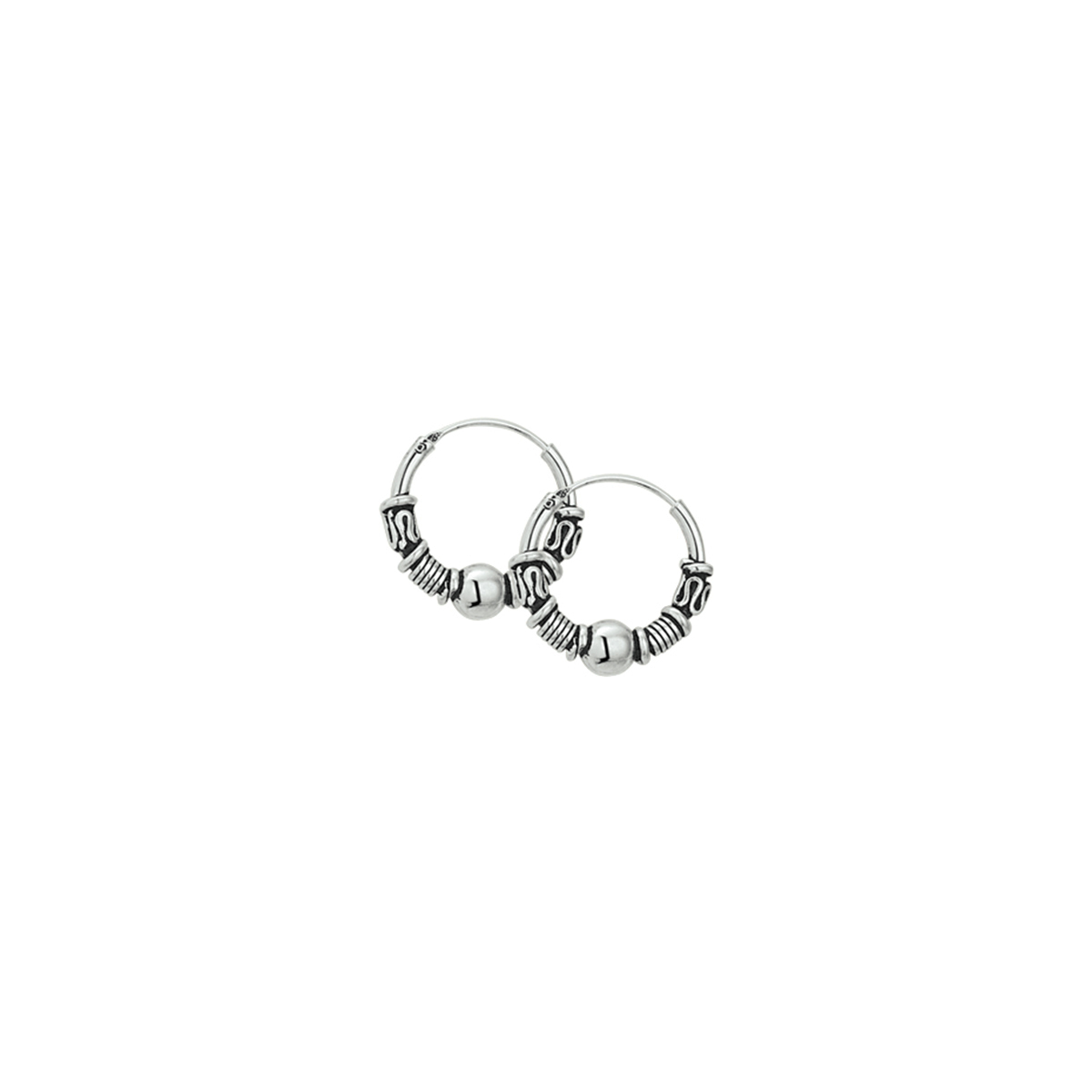 Geoxideerd 925 zilveren oorringen in Bali stijl. De oorringen hebben een breedte van 4mm.