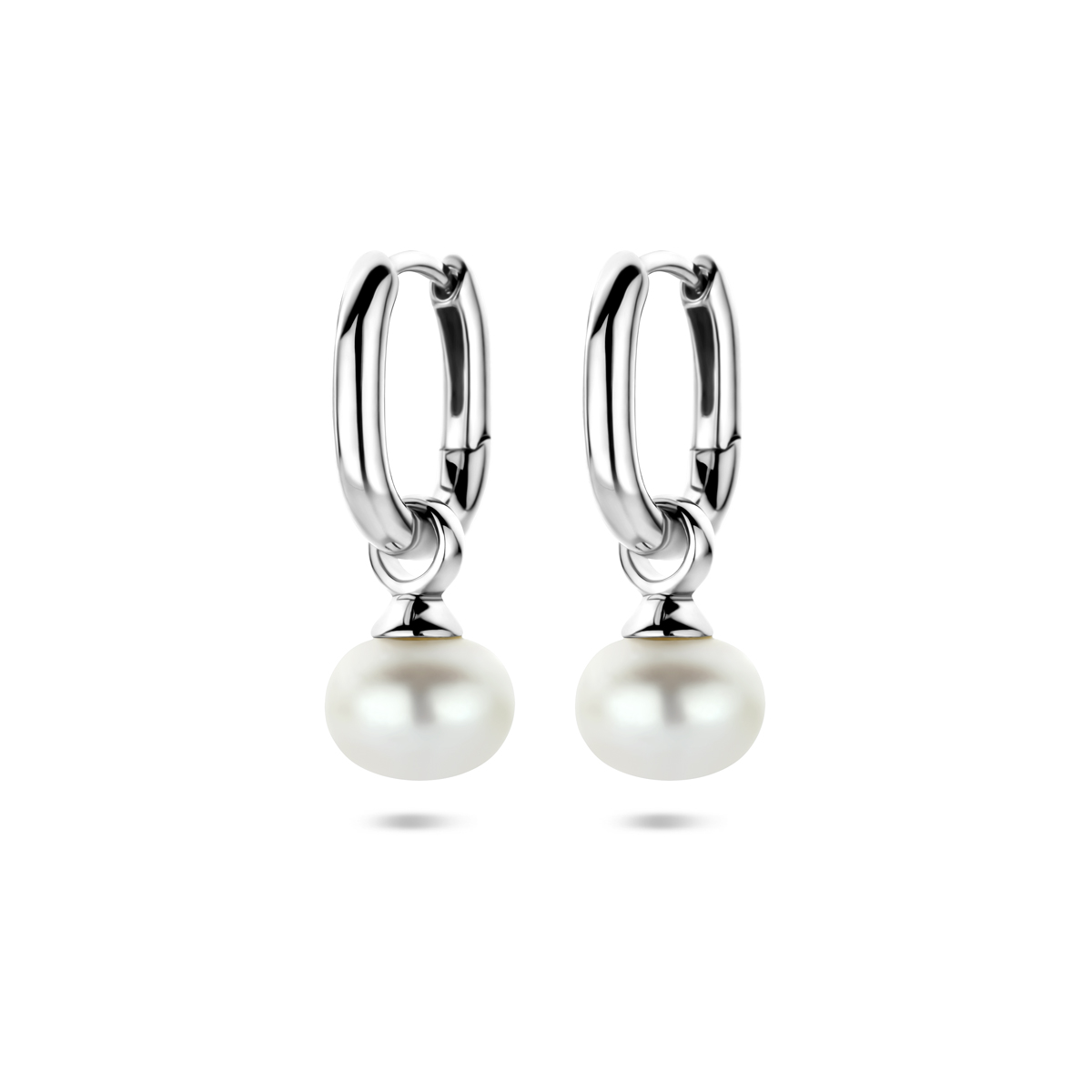 Gerhodineerd 925 zilveren oorringen uitgevoerd met een parel. De oorringen hebben een totale hoogte van 23mm.