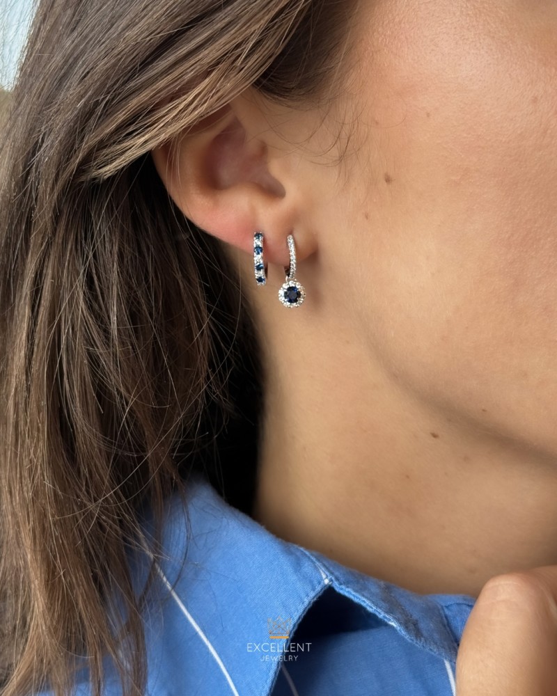 Schitterende witgouden oorringen gezet met diamant en blauwe saffier.