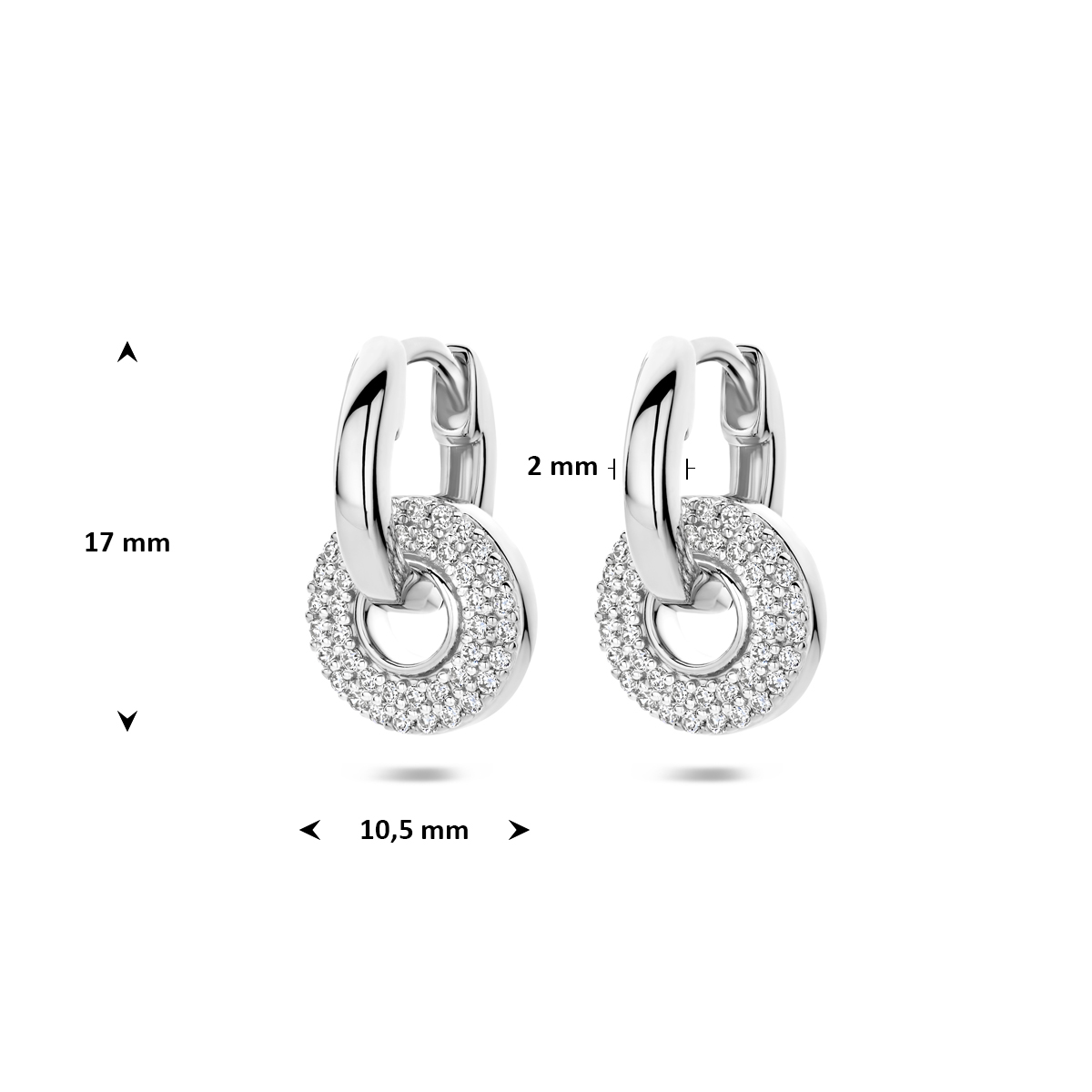 Gerhodineerd 925 zilveren oorringen uitgevoerd met zirkonia. De oorringen hebben een totale hoogte van 17mm.