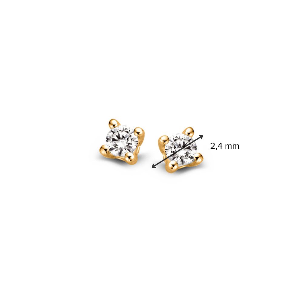 Geelgouden solitair oorknoppen met 2x 0,05 crt.