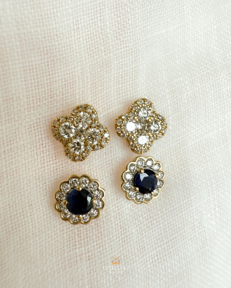 Stijlvolle gouden oorstekers met diamanten in een opvallende bloemvormige zetting.