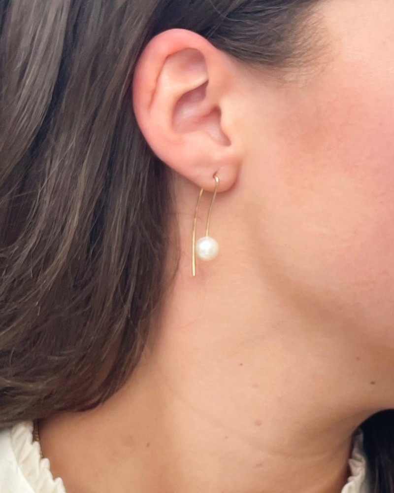 Opvallende gouden oorbellen met parel in strak design.