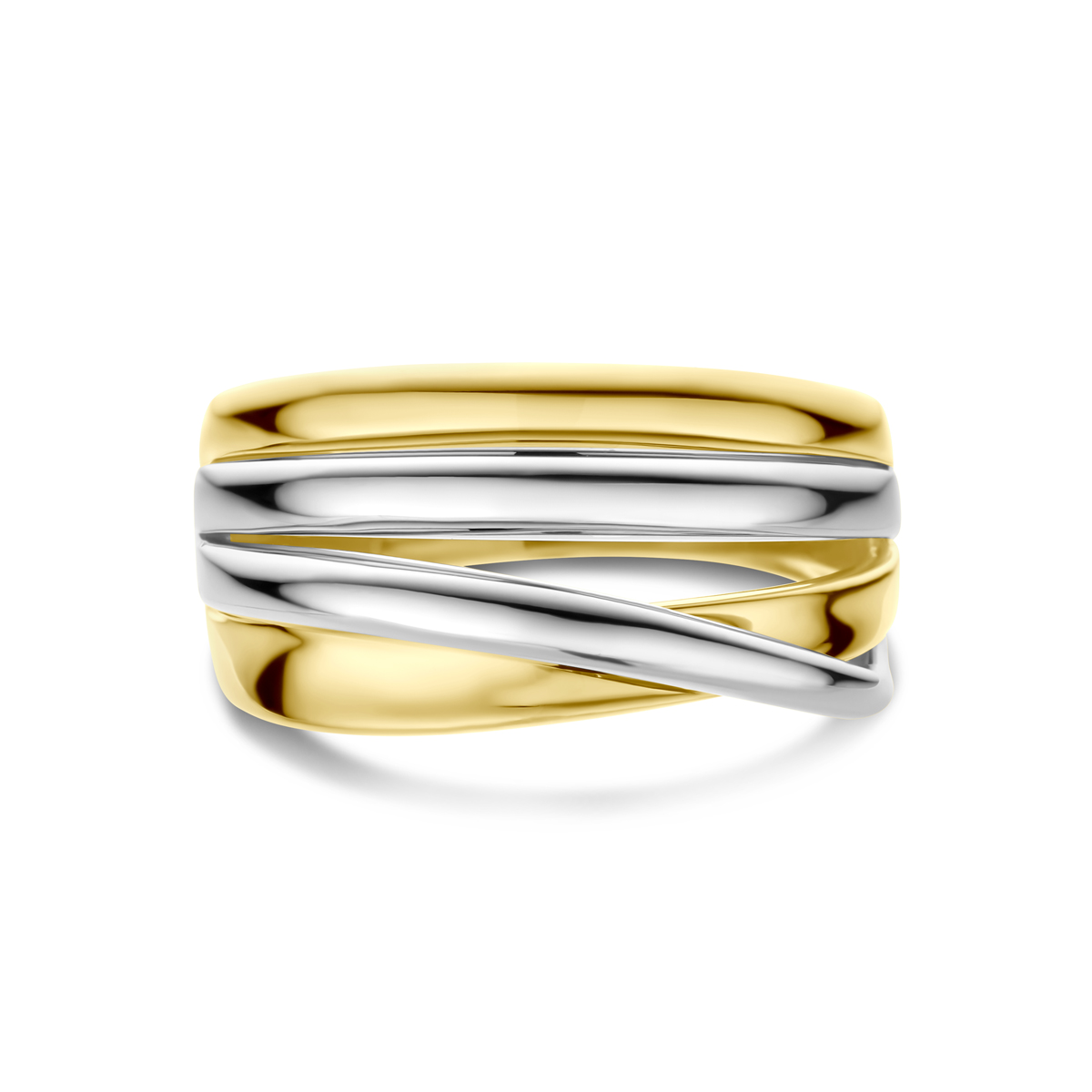 14k Bicolor wit- en geelgouden ring met een breedte van 12mm.