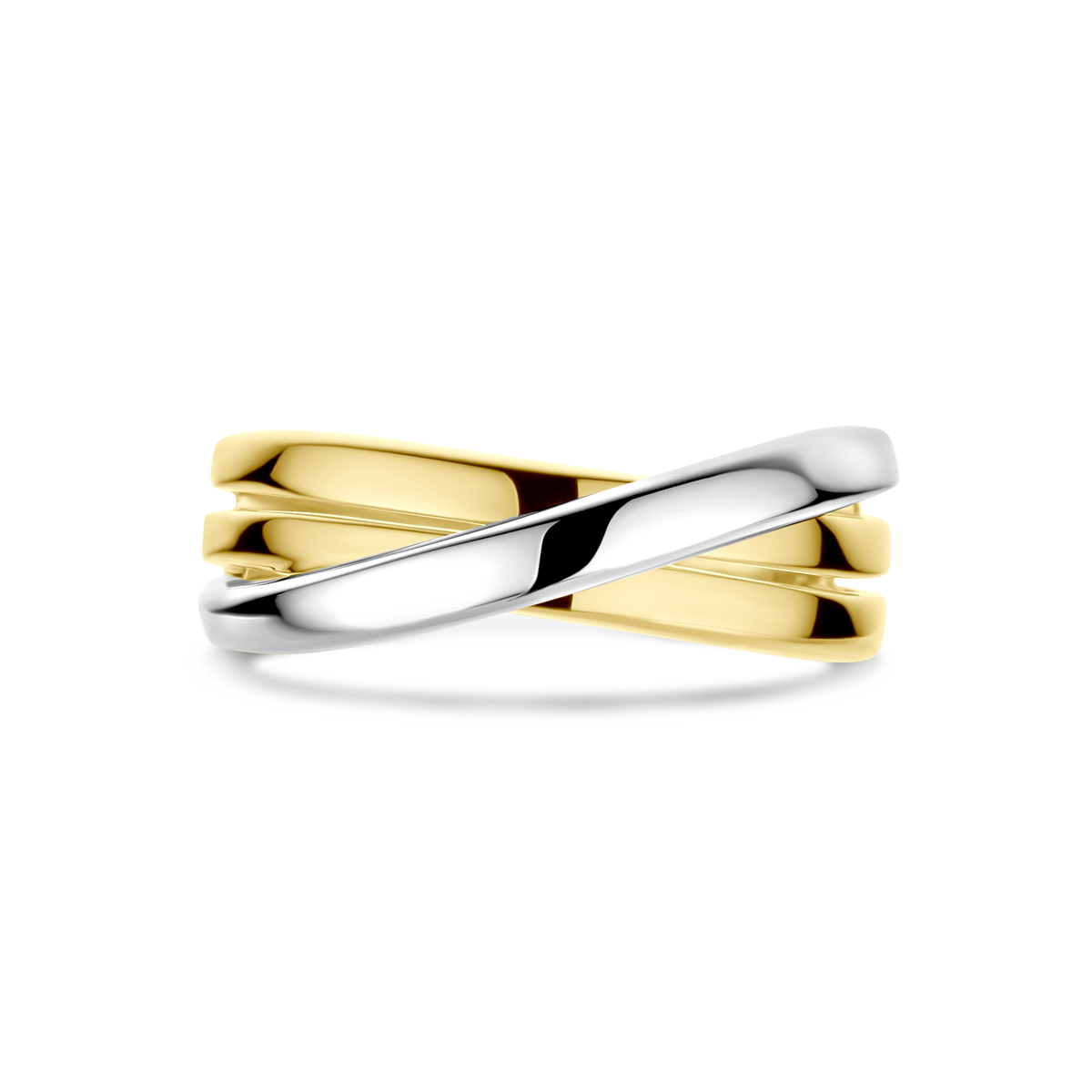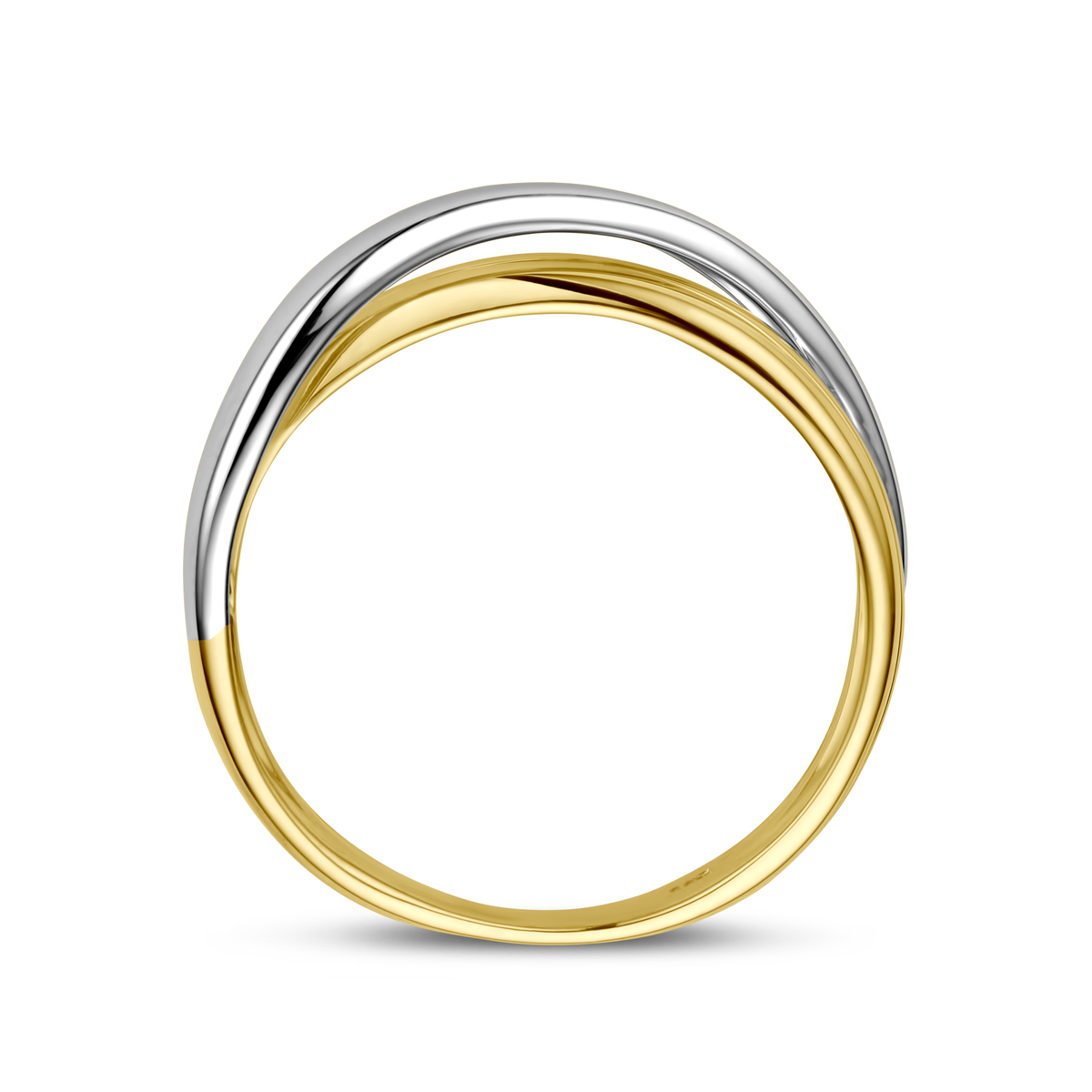 14k Bicolor wit- en geelgouden ring met een breedte van 7.5mm.