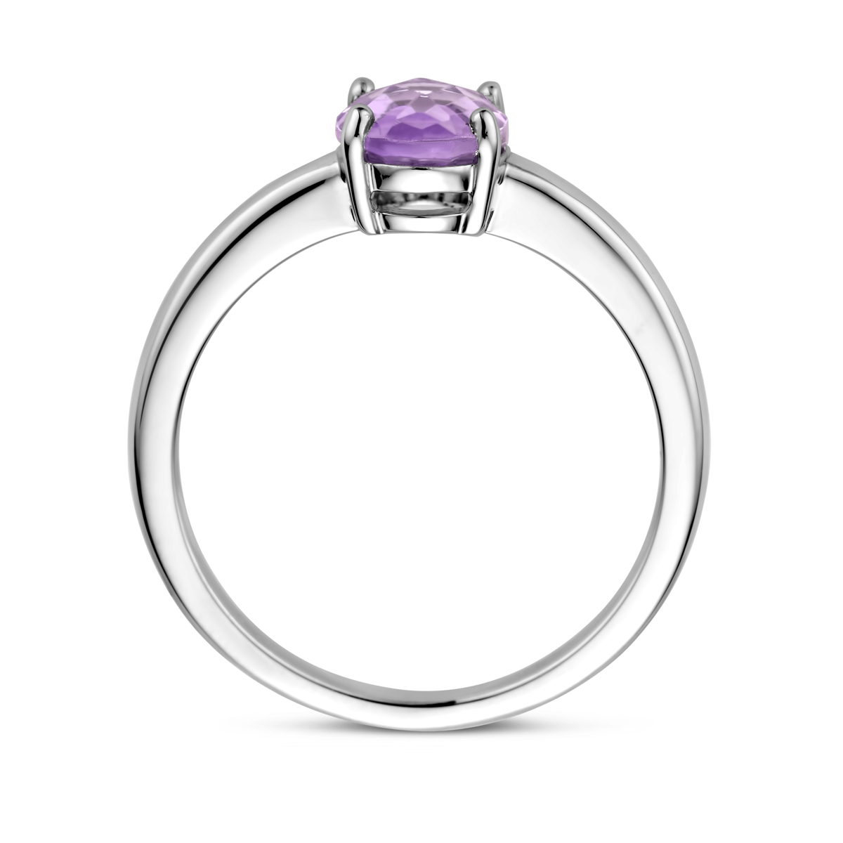 Gerhodineerd 925 zilveren ring uitgevoerd met amethist. De ring heeft een breedte van 8mm.