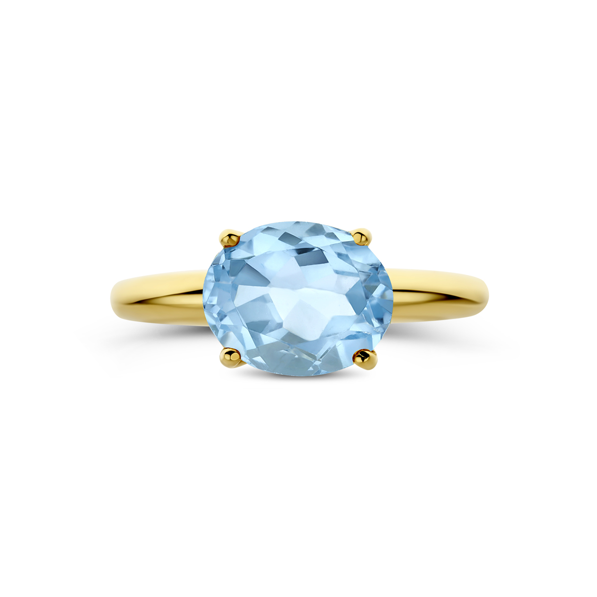 14k Geelgouden ring uitgevoerd met blauw topaas. De ring heeft een afmeting van 10x8mm.