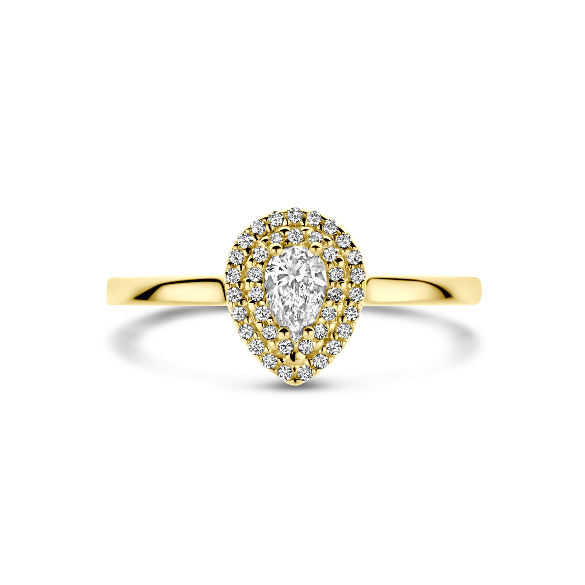 14k Geelgouden ring uitgevoerd met diamant. De ring heeft een breedte van 9.5mm. Het totale diamantgewicht is 0.36ct.