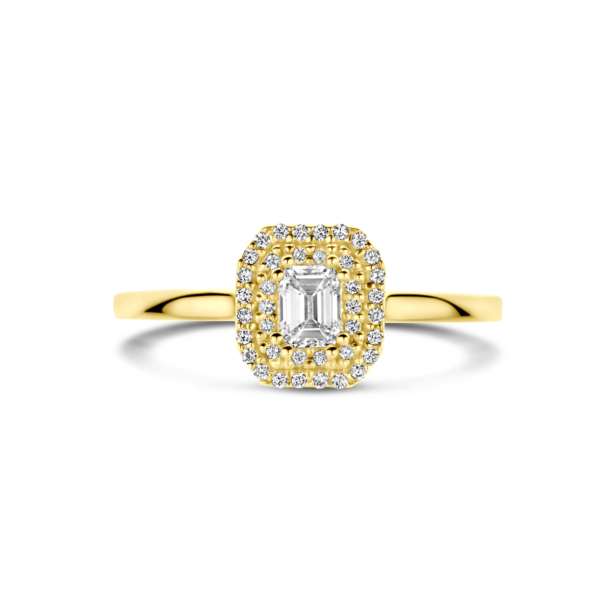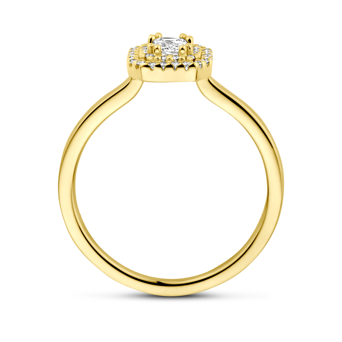 14k Geelgouden ring uitgevoerd met diamant. De ring heeft een breedte van 8.5mm. Het totale diamantgewicht is 0.36ct.