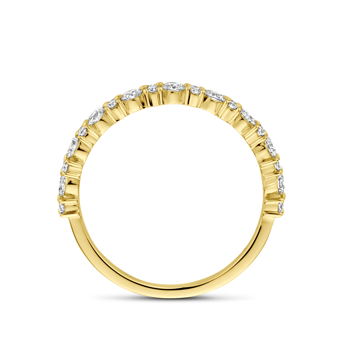 14k Geelgouden ring uitgevoerd met diamant. De ring heeft een breedte van 3.2mm. Het totale diamantgewicht is 0.64ct.