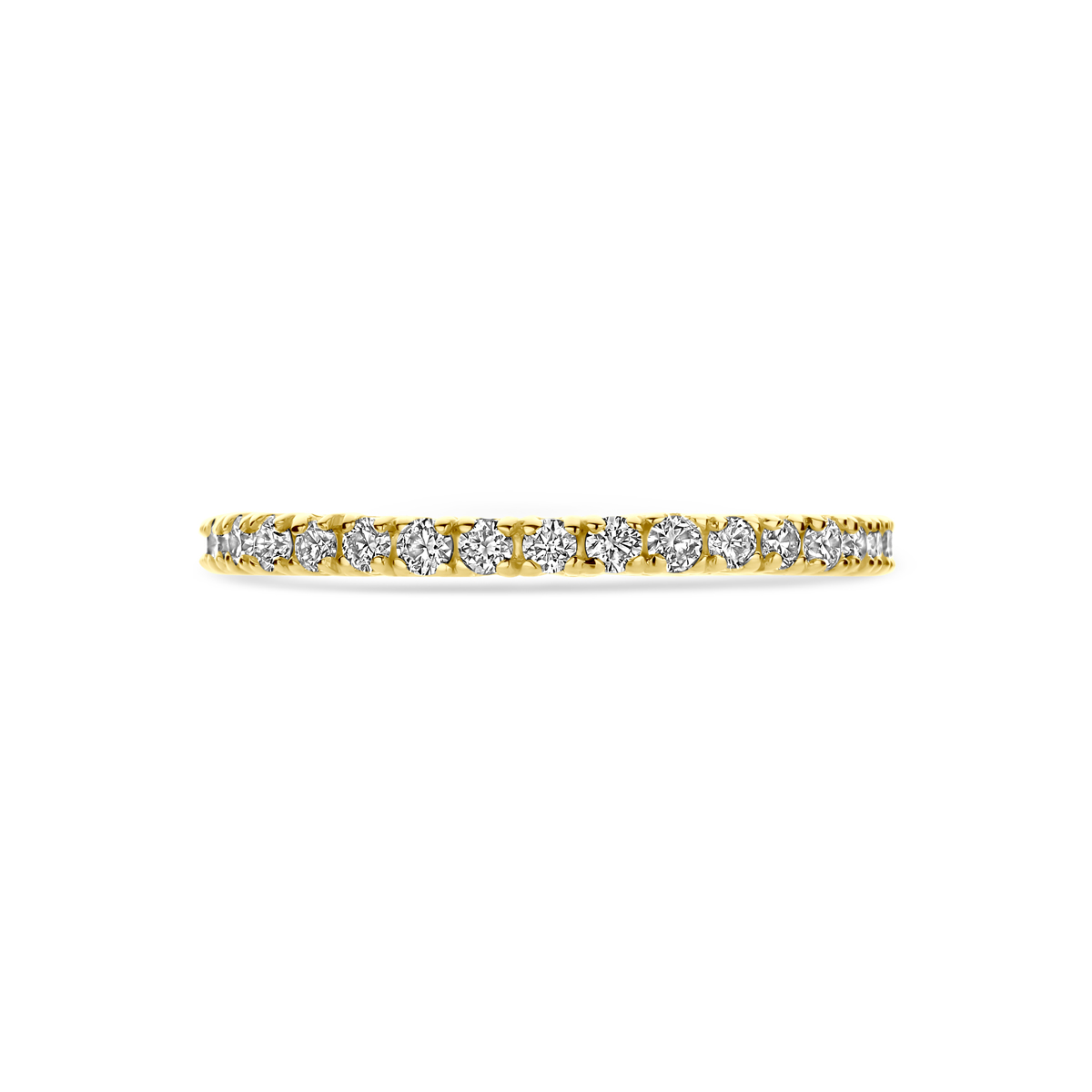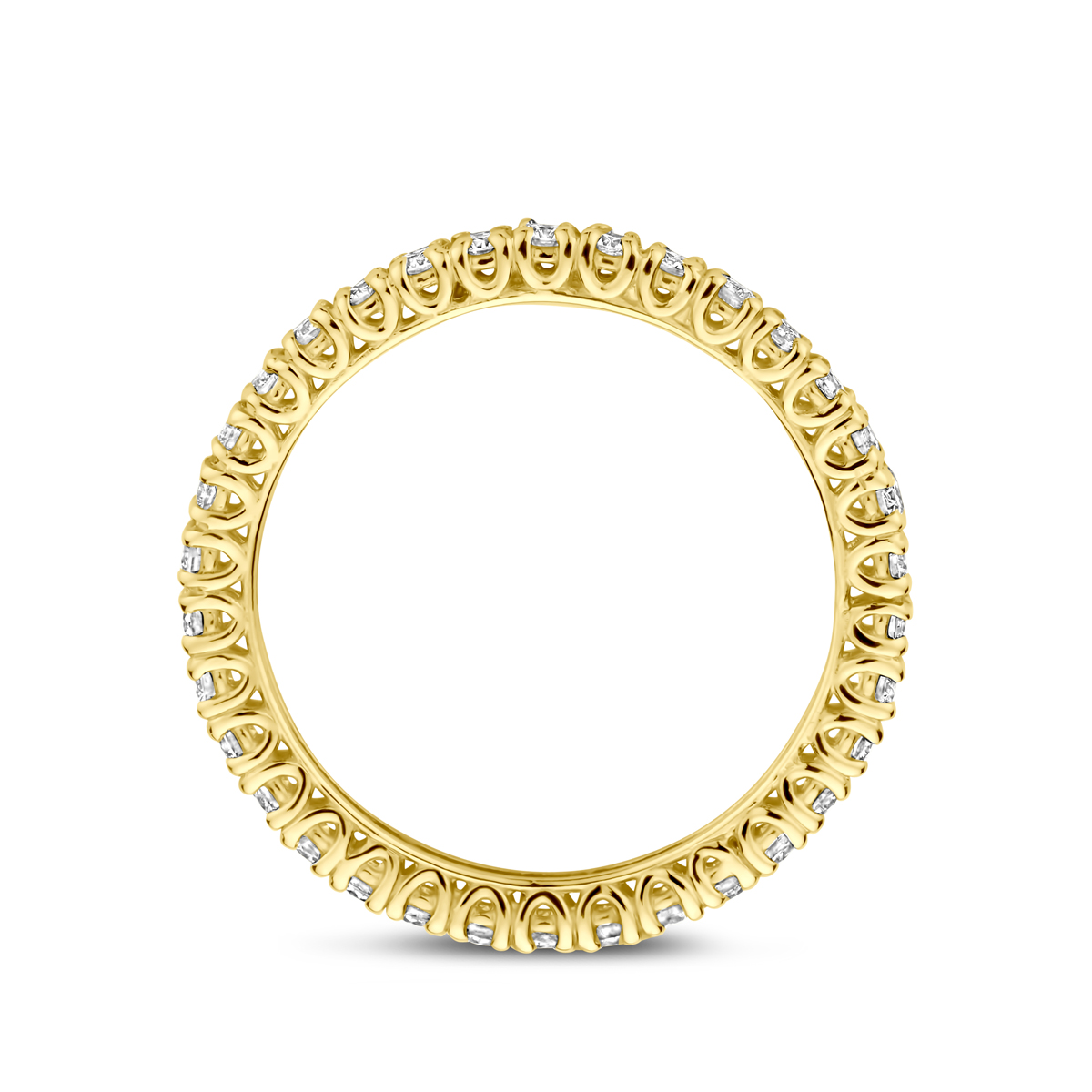 14k Geelgouden alliance ring uitgevoerd met een schitterende diamant rij rondom. De ring heeft een breedte van 2mm. Het gemiddelde diamantgewicht is 0.70ct. Per ringmaat verschilt het diamantgewicht.