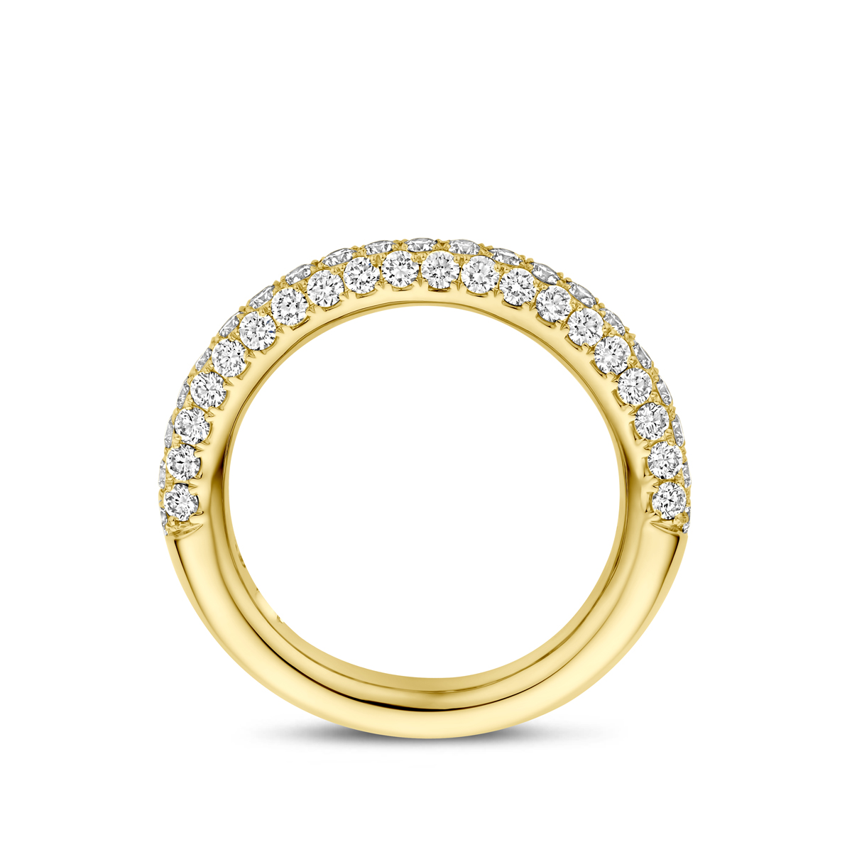 14k Geelgouden ring uitgevoerd met diamant. De ring heeft een breedte van 3.2mm. Het totale diamantgewicht is 1.24ct.