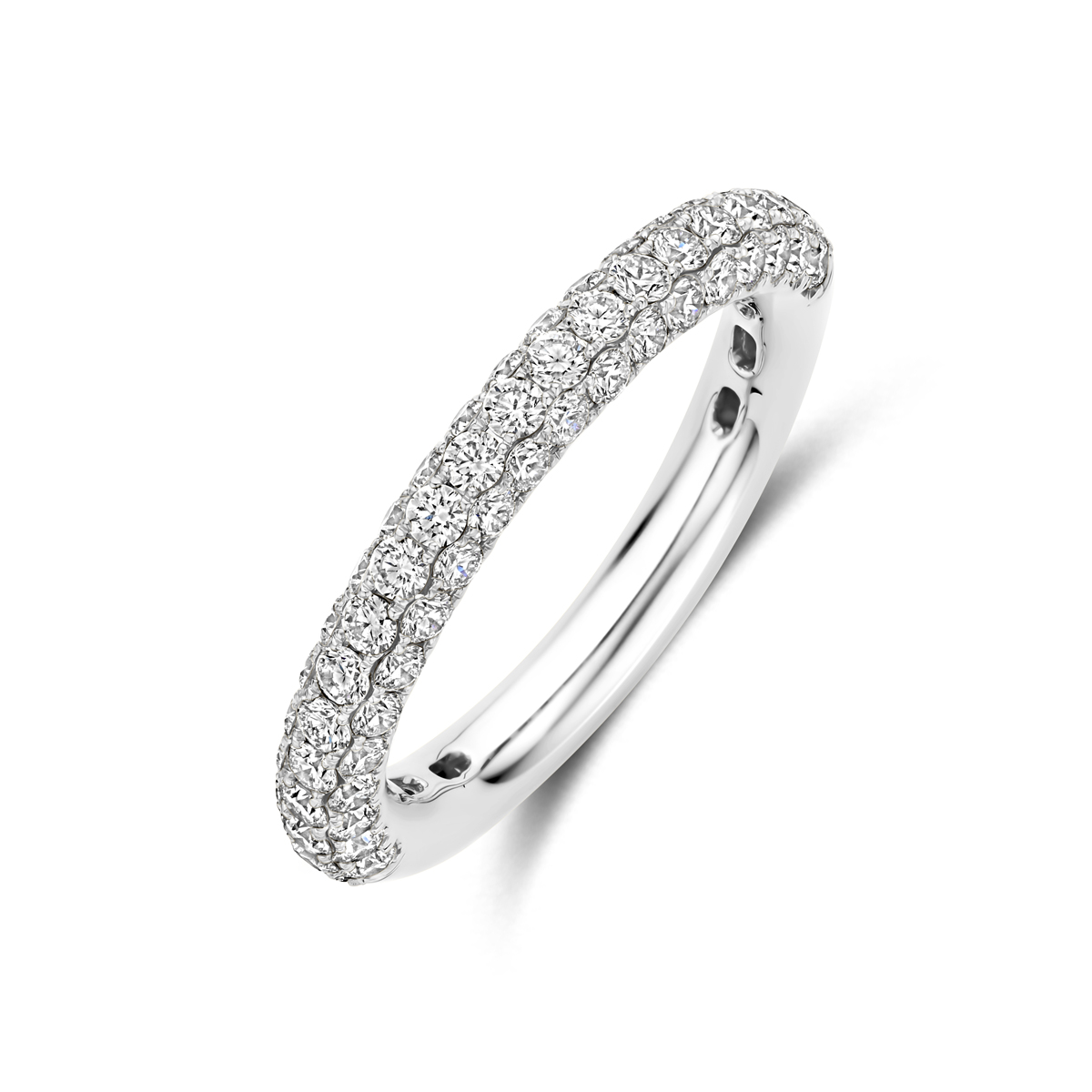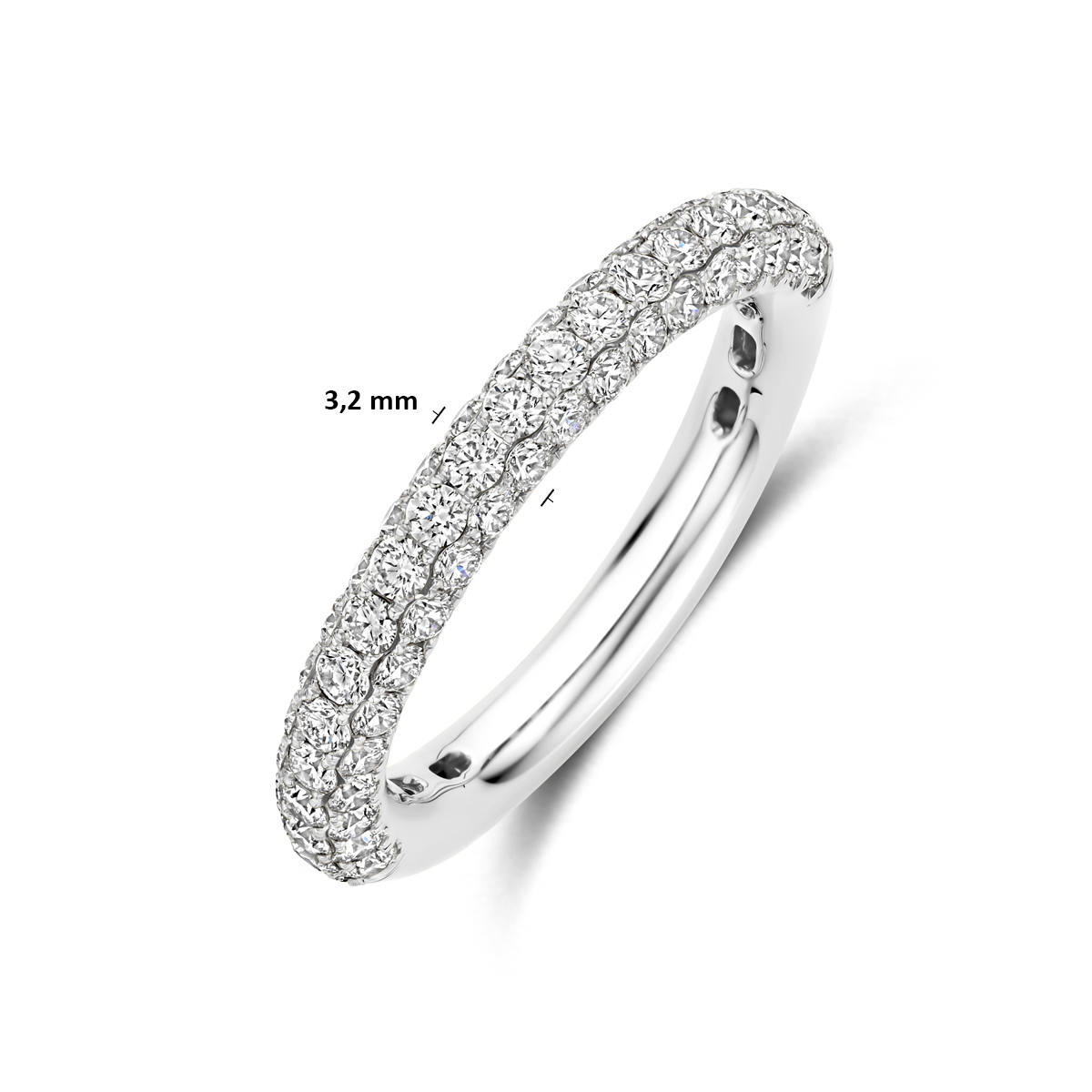 14k Witgouden ring uitgevoerd met diamant. De ring heeft een breedte van 3.2mm. Het totale diamantgewicht is 1.24ct.
