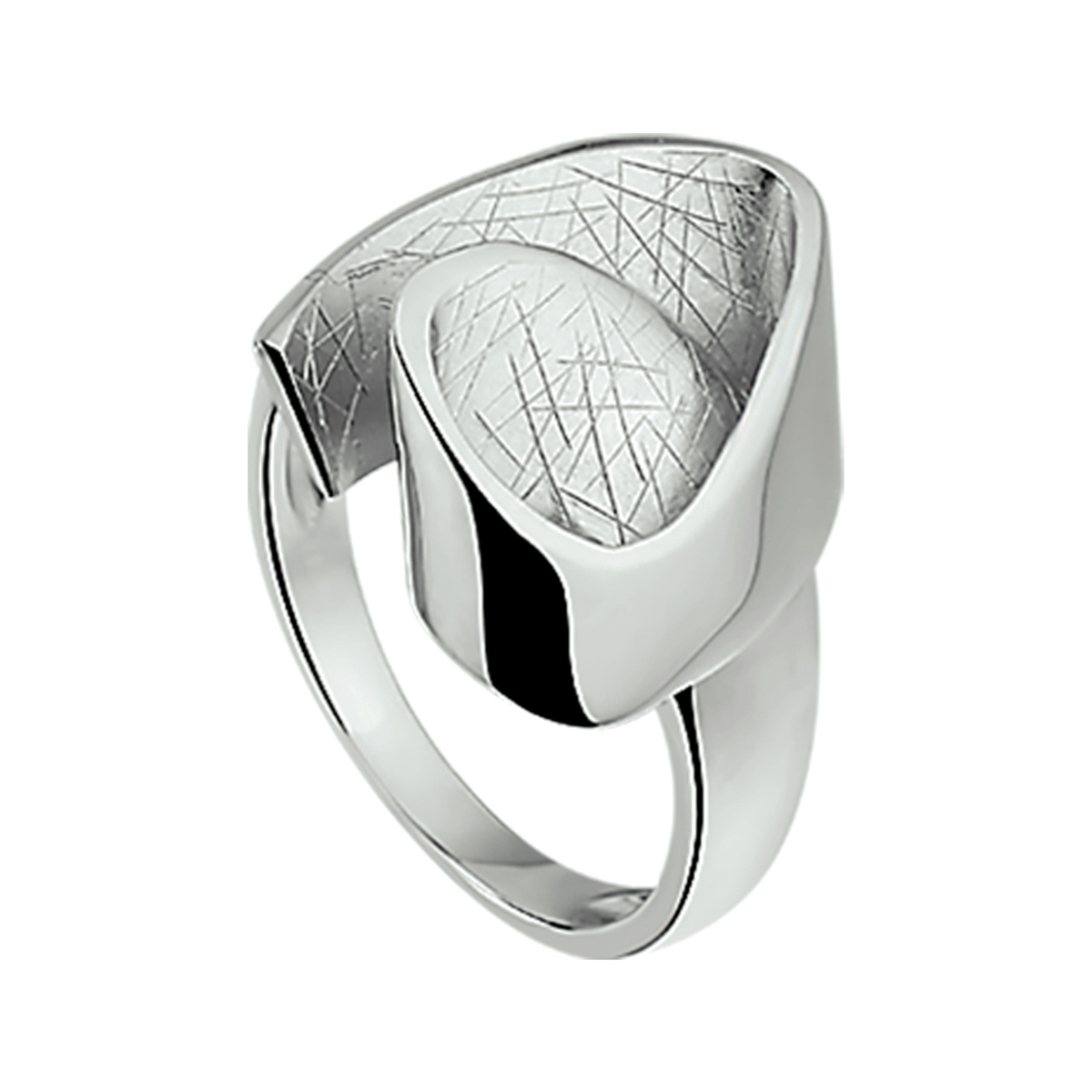 Gerhodineerd zilveren ring met een poli en gescratchte afwerking.