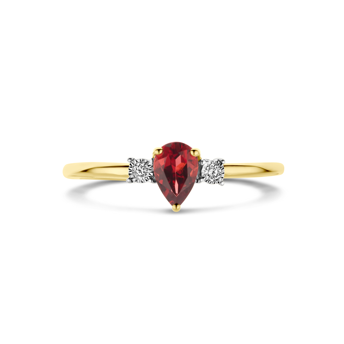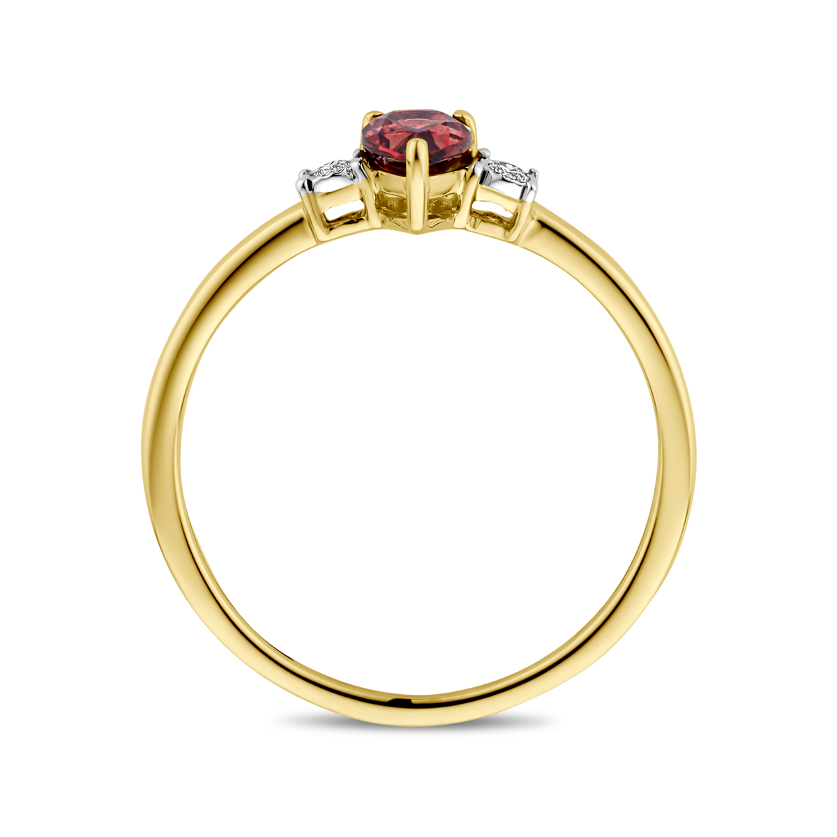 ring granaat en diamant 0.03ct h si 14K geelgoud