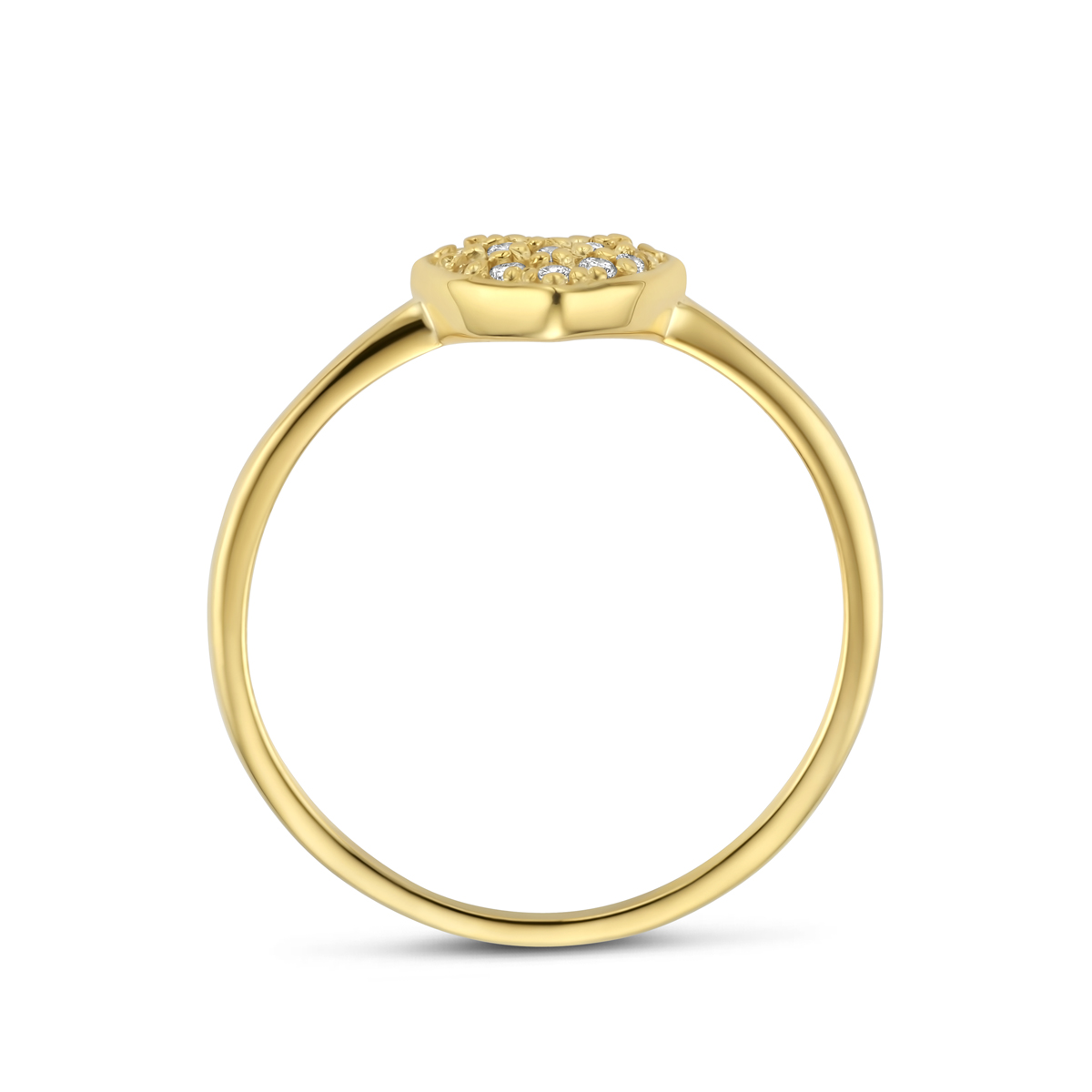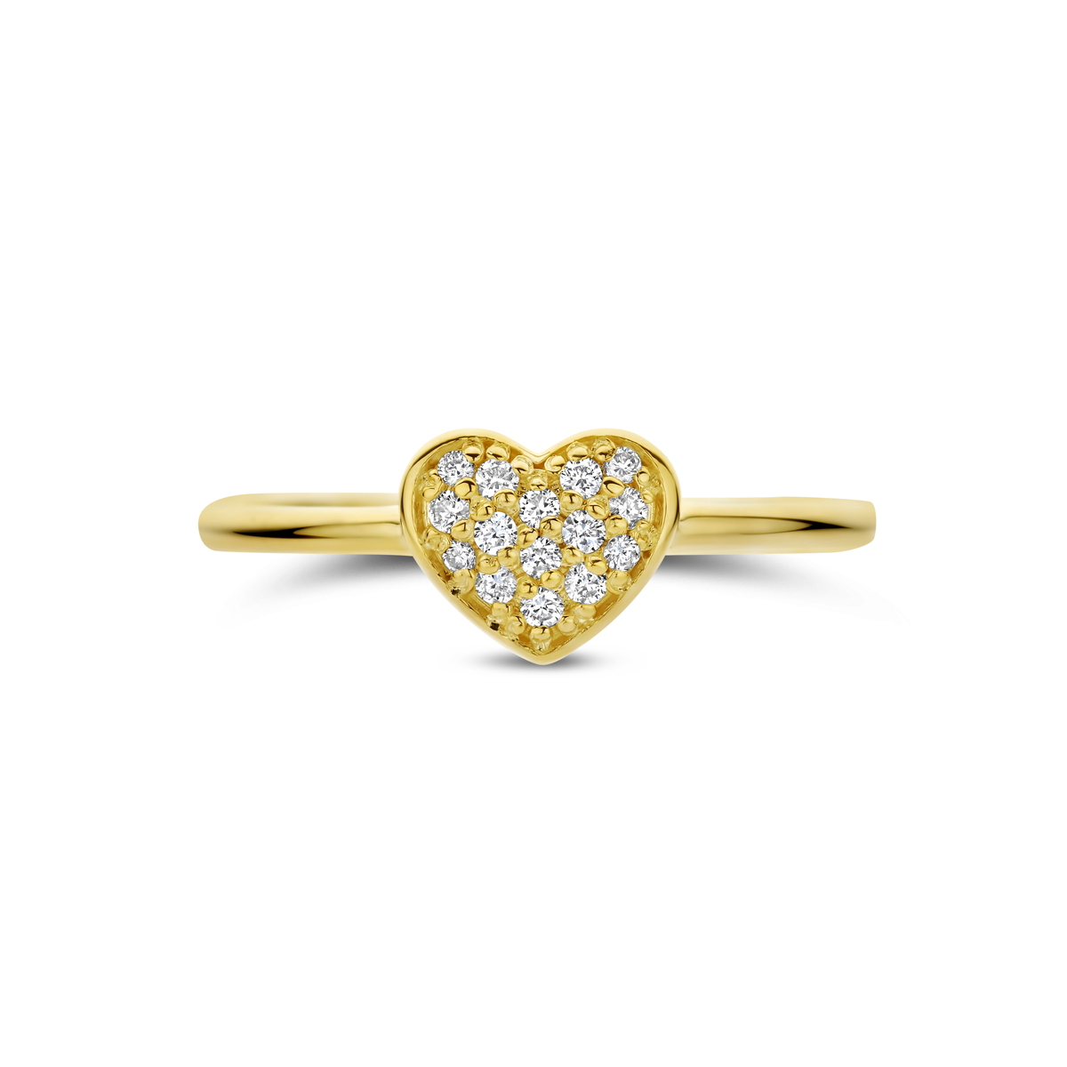 14k Geelgouden ring uitgevoerd met een hartje diamant. De ring heeft een afmeting van 6.5x8mm. Het totale diamantgewicht is 0.10ct.