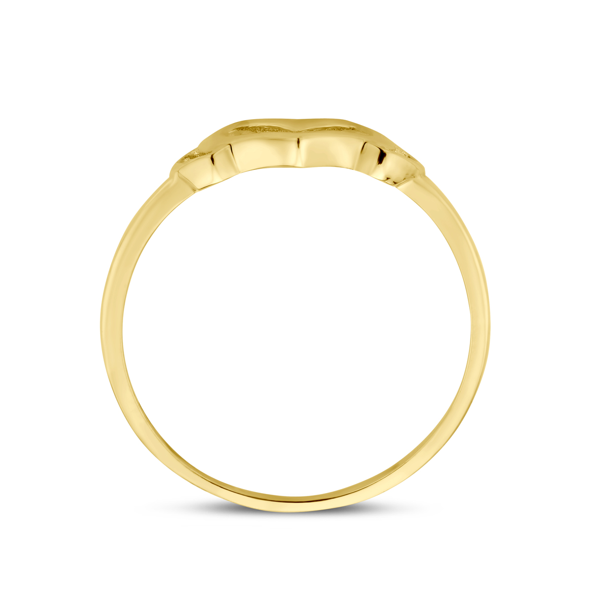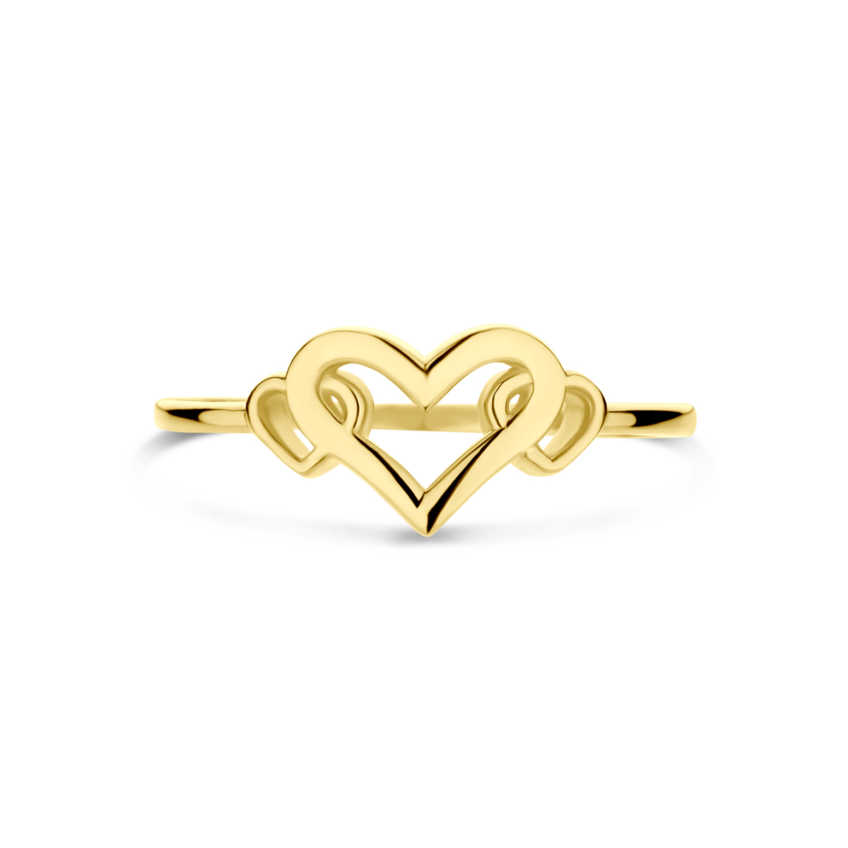 14k Geelgouden ring uitgevoerd met hartjes. De ring heeft een breedte van 7.5mm.