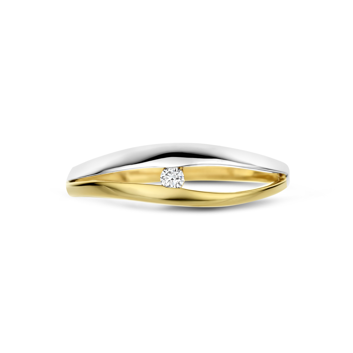 14k Bicolor geel- en witgouden ring uitgevoerd met een lab grown diamant met een totaalgewicht van 0.04ct.