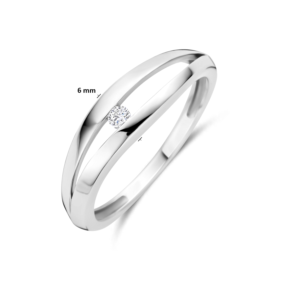 Gerhodineerd 925 zilveren ring uitgevoerd met lab grown diamant. De ring heeft een breedte van 6mm. Het totale diamantgewicht is 0.04ct.