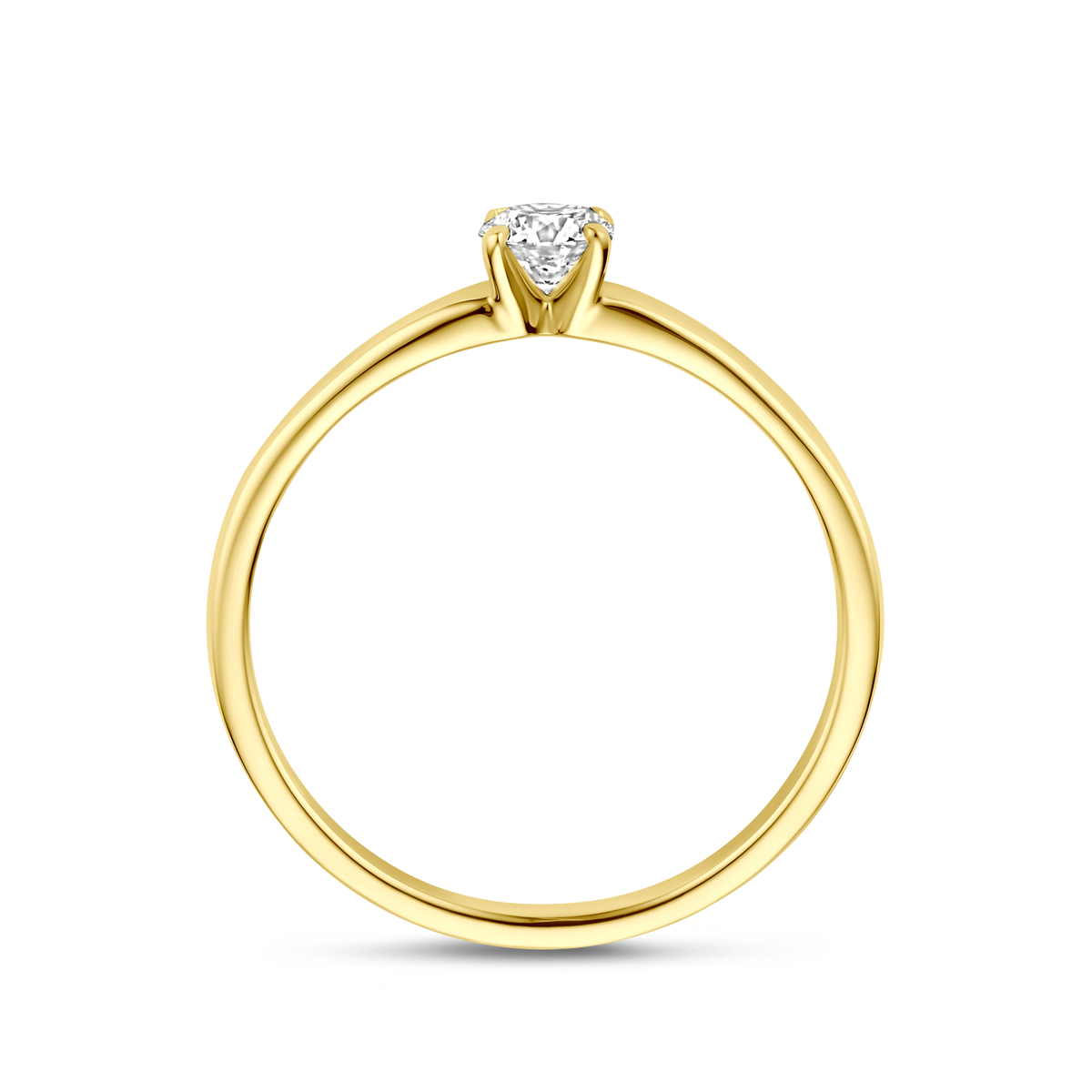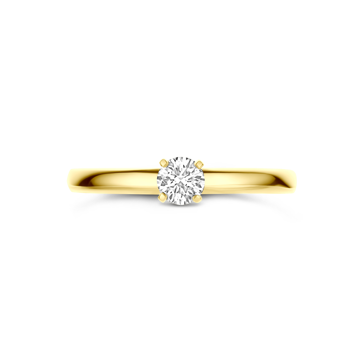 14k Geelgouden ring uitgevoerd met lab grown diamant. De steen heeft een diameter van 4mm. Het totale diamantgewicht is 0.25ct.