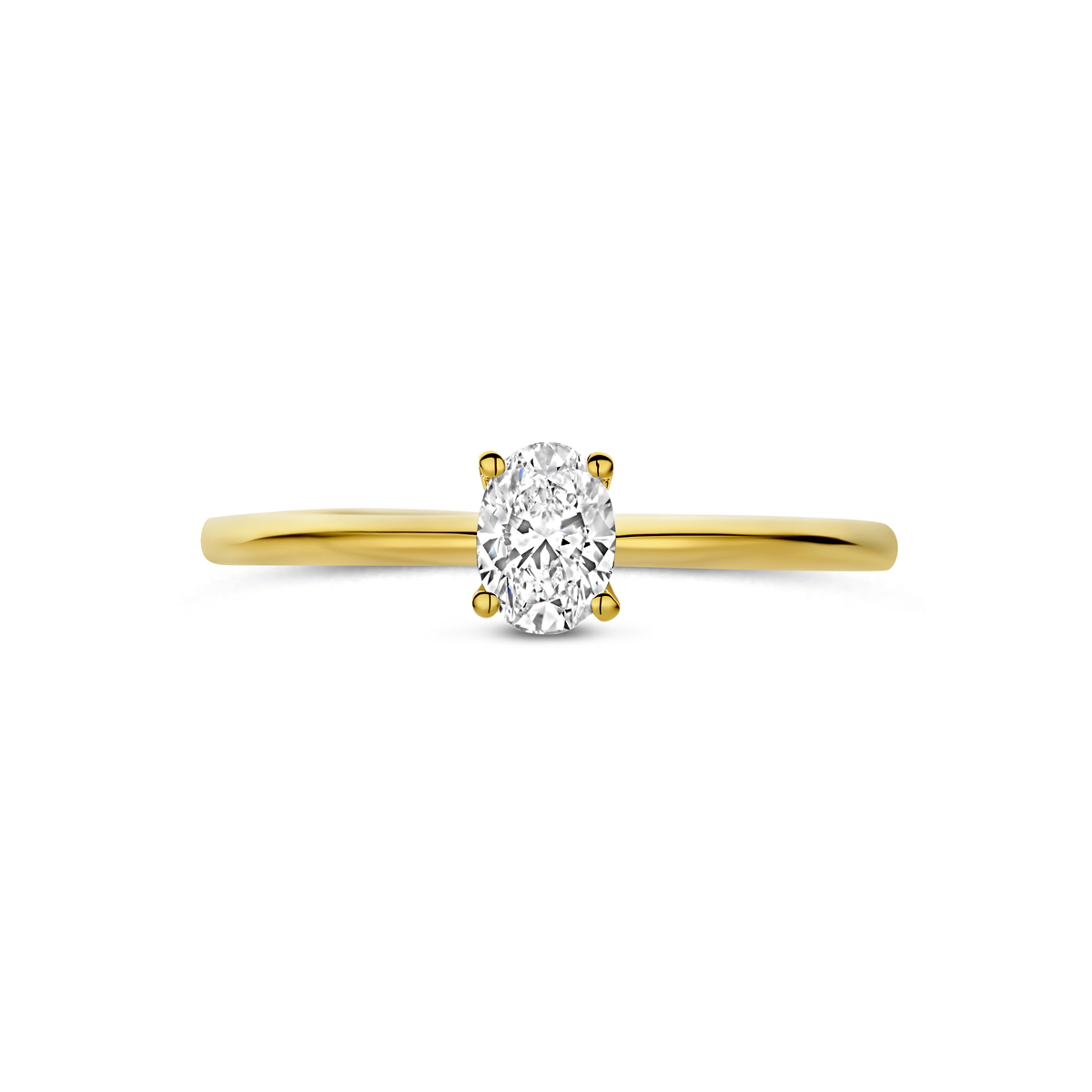 14k Geelgouden ring uitgevoerd met een lab grown diamant. Het totale diamantgewicht is 0.30ct. Lab grown diamanten zijn diamanten die ontstaan in een laboratorium. Onder extreem hoge druk en temperatuur wordt het natuurlijk ontstaansproces nagebootst met als eindresultaat een diamant met dezelfde chemische eigenschappen maar met een andere oorsprong.