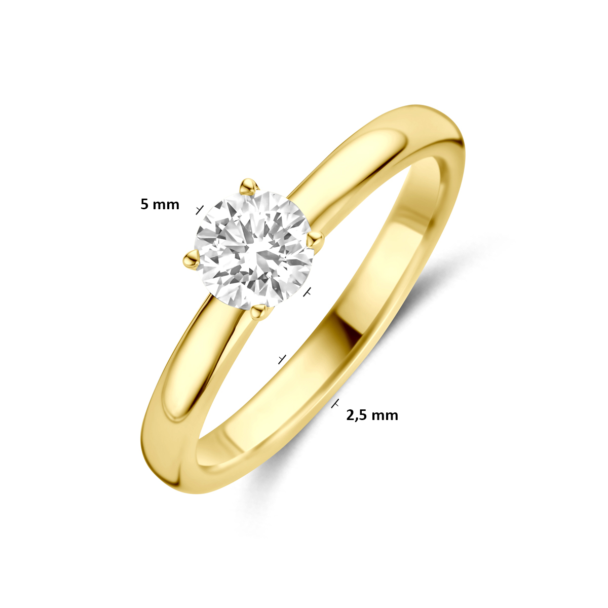 14k Geelgouden ring uitgevoerd met lab grown diamant. De steen heeft een diameter van 5mm. Het totale diamantgewicht is 0.50ct.