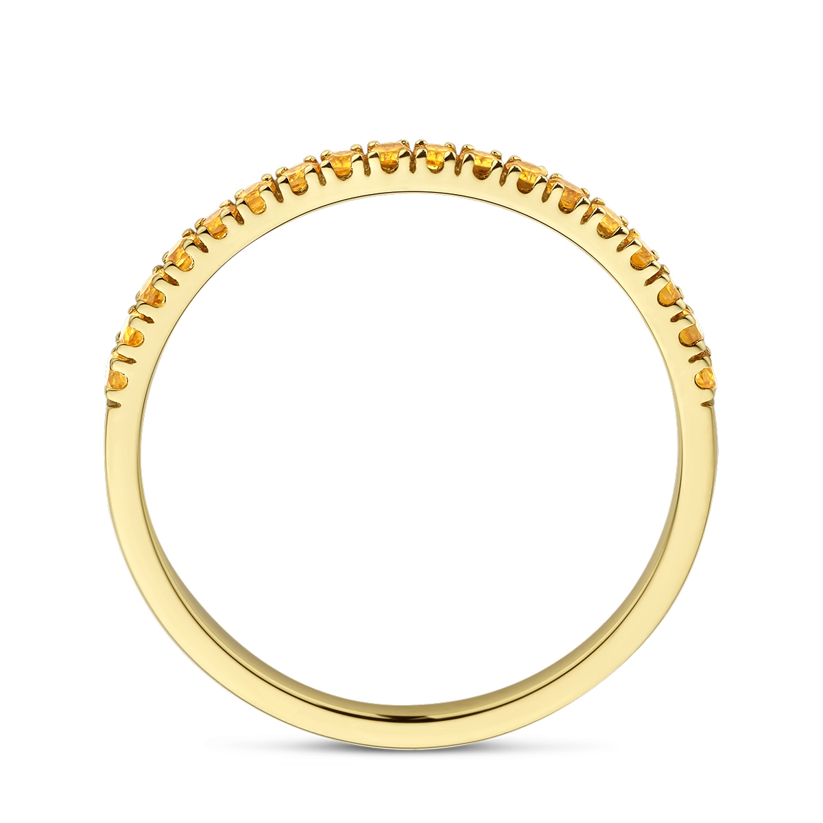 14k Geelgouden ring met geboortesteen uitgevoerd met citrien. De ring heeft een breedte van 1.5mm.