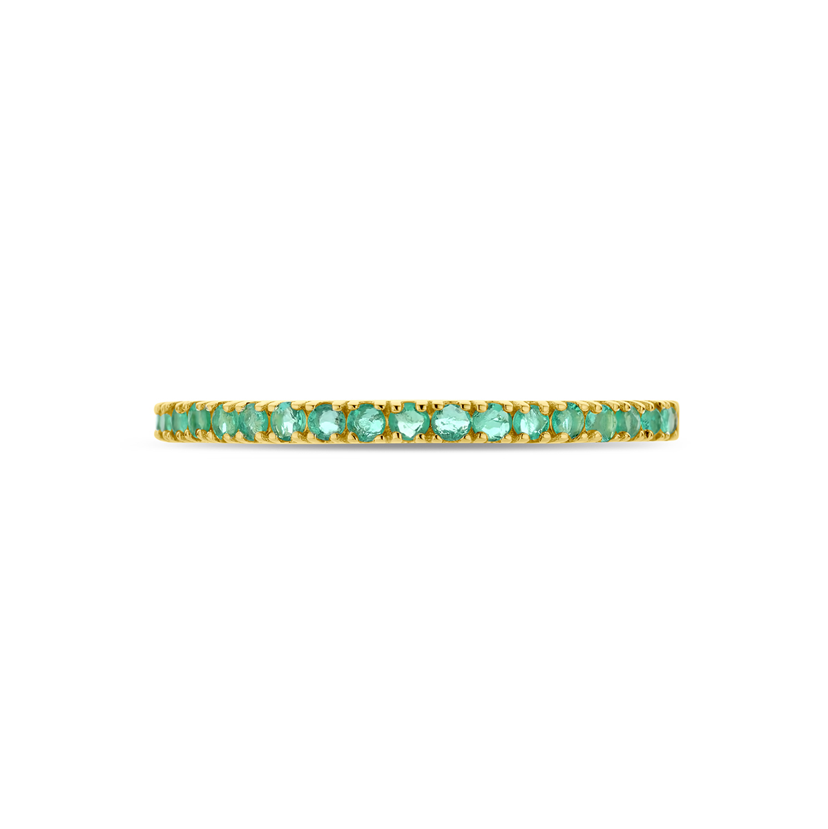 14k Geelgouden ring met geboortesteen uitgevoerd met smaragd. De ring heeft een breedte van 1.5mm.