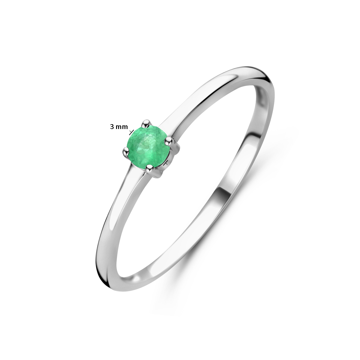Gerhodineerd 925 zilveren ring uitgevoerd met een schitterende smaragd. De ring heeft een breedte van 3mm.