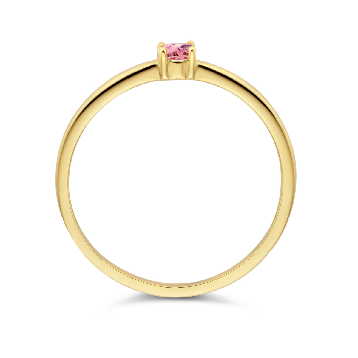 14k Geelgouden ring uitgevoerd met een schitterende roze toermalijn. De steen heeft een breedte van 3mm.